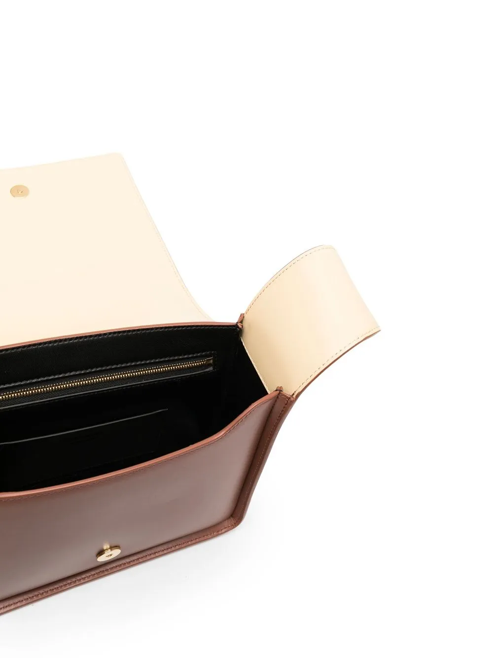 Коричневый, телячья кожа, квадратная форма, золотистый логотип, регулируемый ремень на плечо и внутренний карман на молнии.