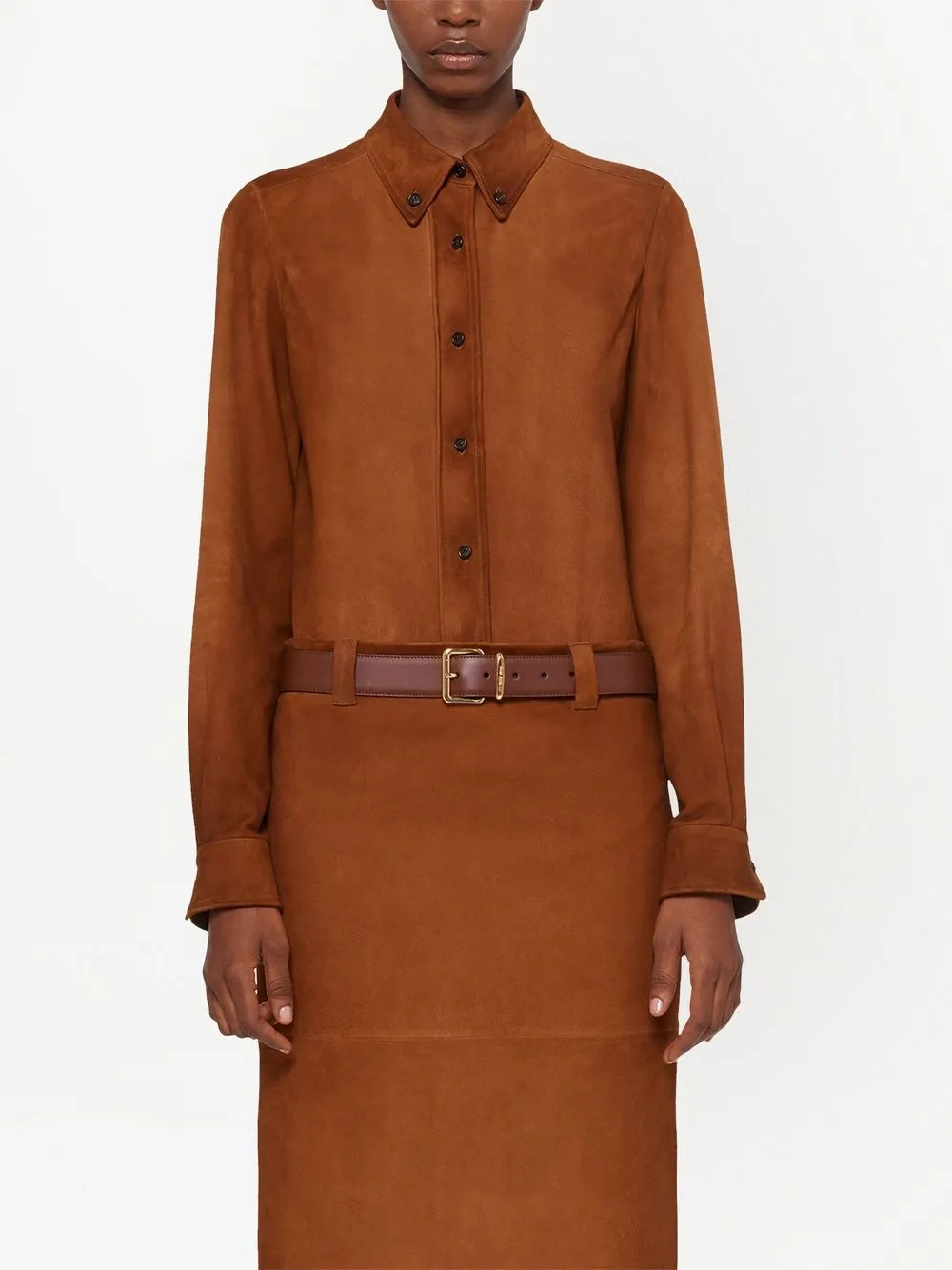 Коричневый, кожа, выгравированный логотип, застежка на пряжке и регулируемый дизайн.