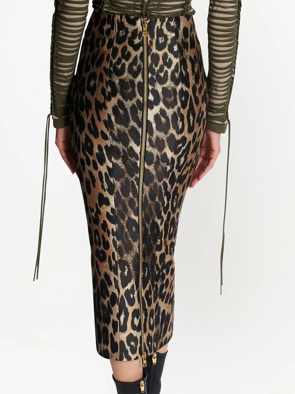 Прямая юбка с леопардовым принтом BALMAIN, коричневый