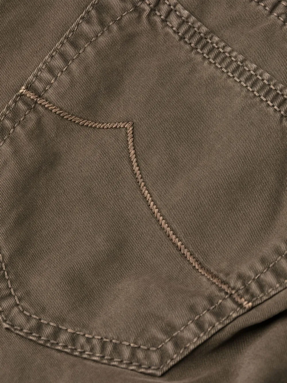Серо-коричневый, смесовый хлопок, нашивка с логотипом сзади, вышитый логотип сбоку, петли для ремня, застежка на молнии и пуговице спереди, пять карманов и прямой крой.