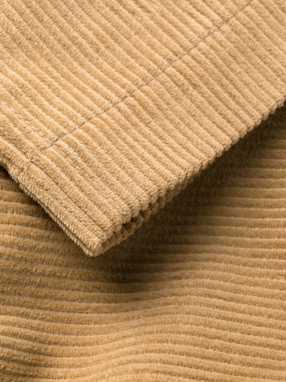 Бежевый, вельветовый материал, ярлык с полосками 4-Bar, петли для ремня, застежка на молнии и пуговице спереди, широкий крой и укороченная длина.