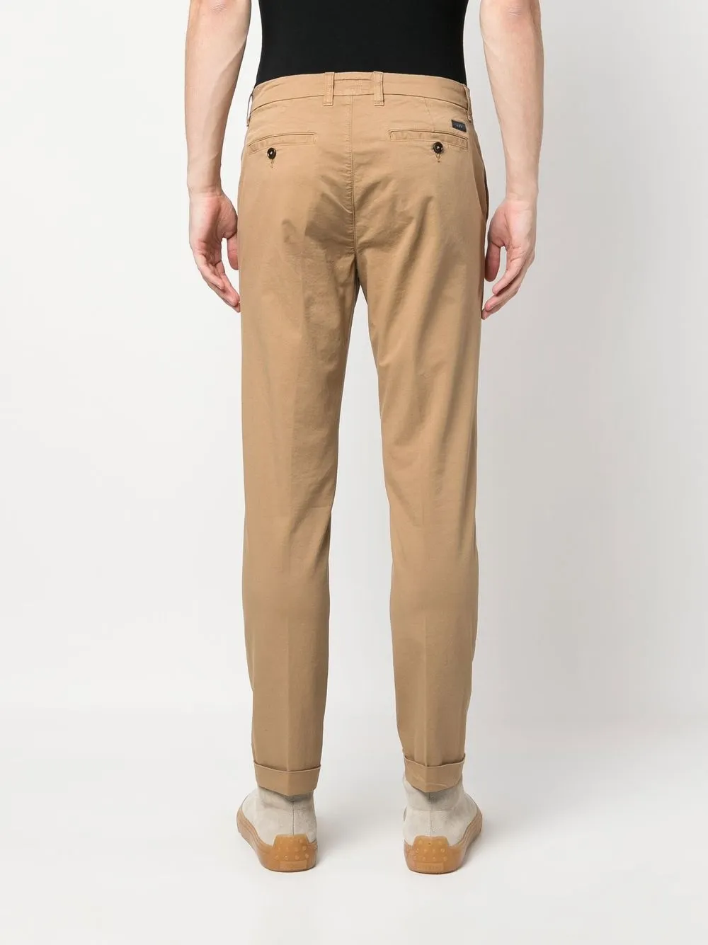 Расцветка Light Brown, эластичный хлопок, нашивка с логотипом сзади, узкий крой, петли для ремня, потайная застежка спереди, два вшитых кармана по бокам, два кармана с листочкой сзади и подвороты.