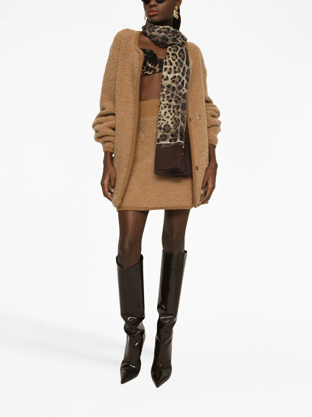 Шелковый шарф с леопардовым принтом DOLCE & GABBANA, коричневый 76 779₽