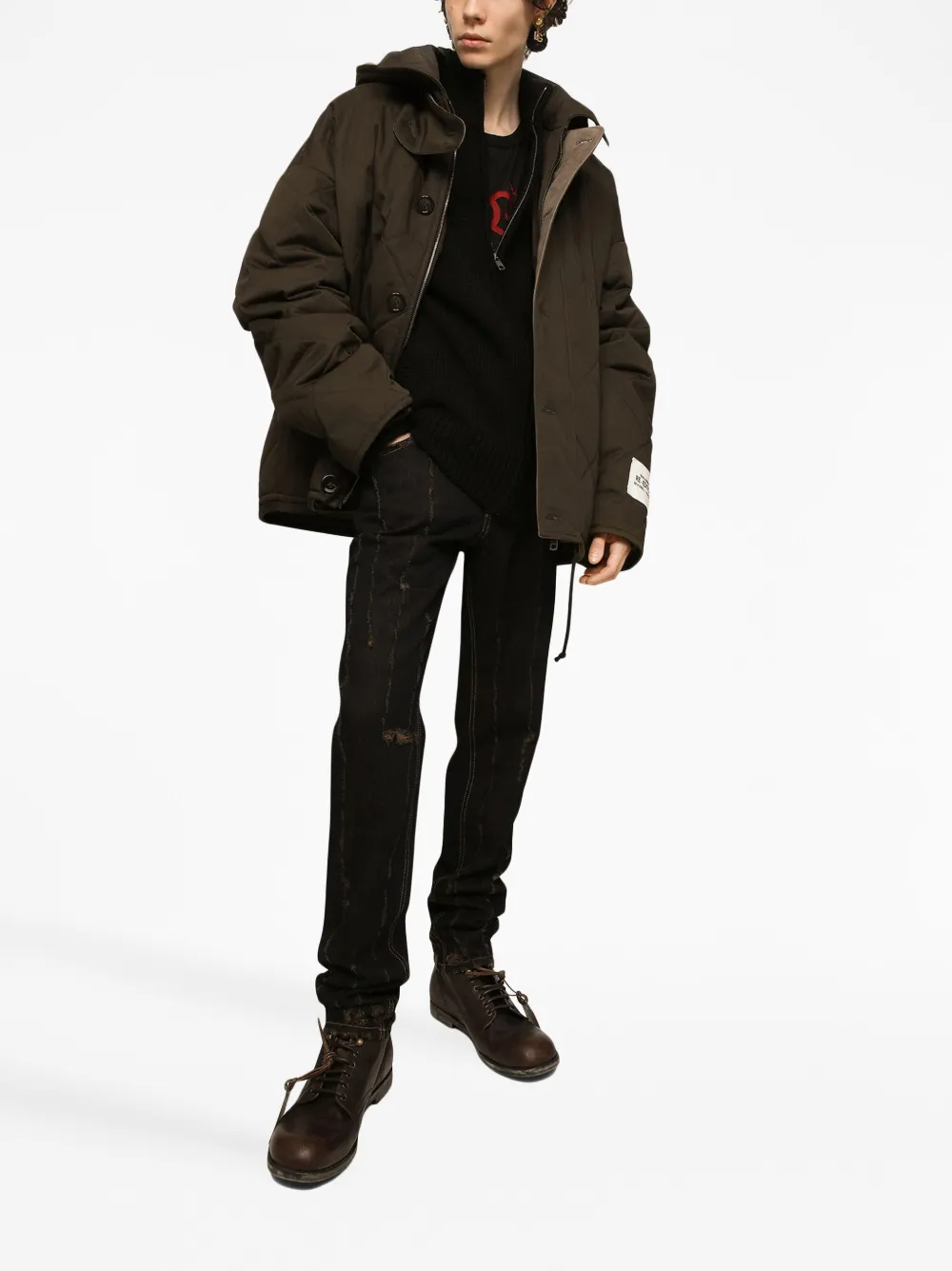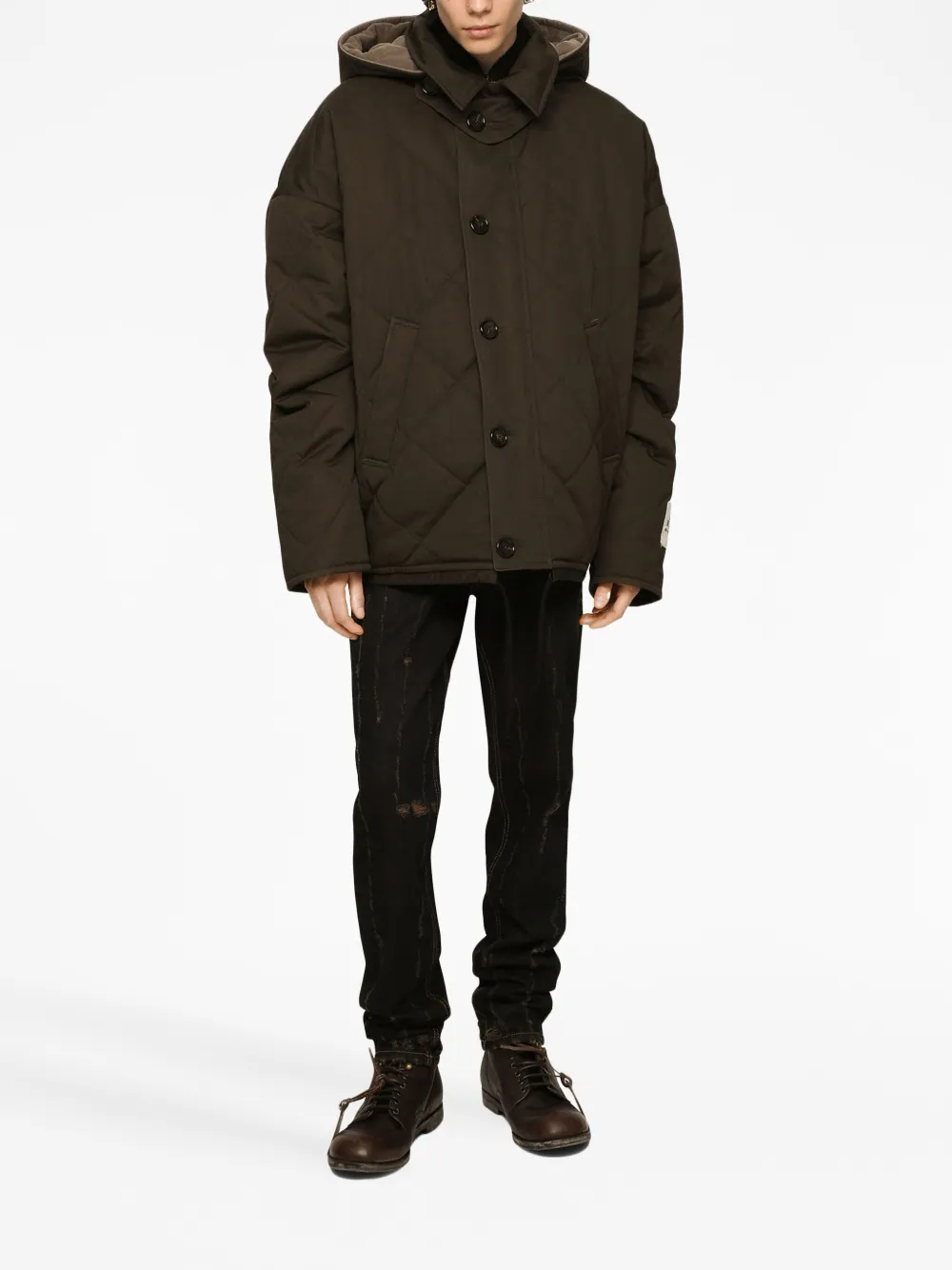 Стеганый пуховик DOLCE & GABBANA, коричневый