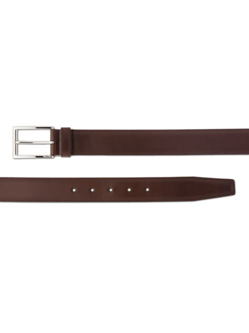 Коричневый, кожа, гладкая текстура кожи, серебристая фурнитура, застежка на пряжке, прорезанные отверстия и регулируемый дизайн.