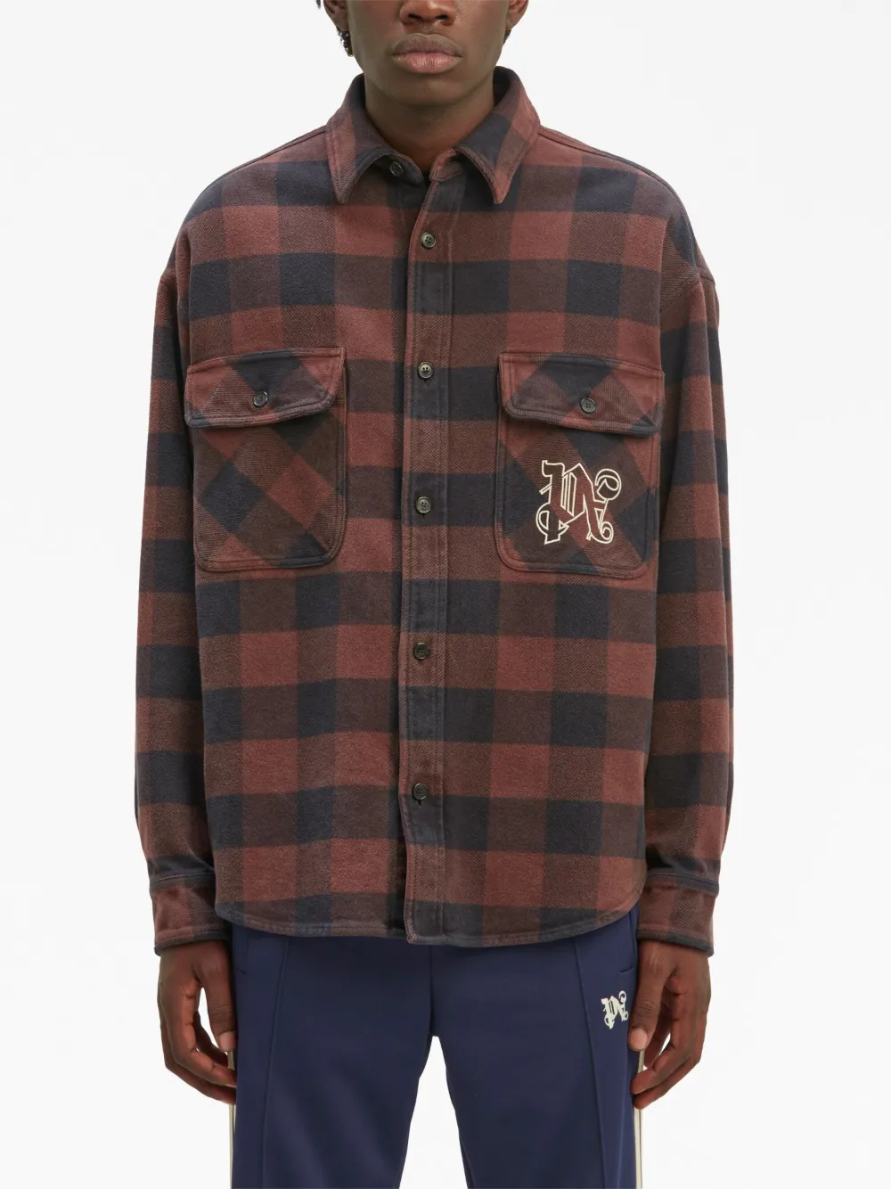 Клетчатая рубашка с монограммой PALM ANGELS, коричневый