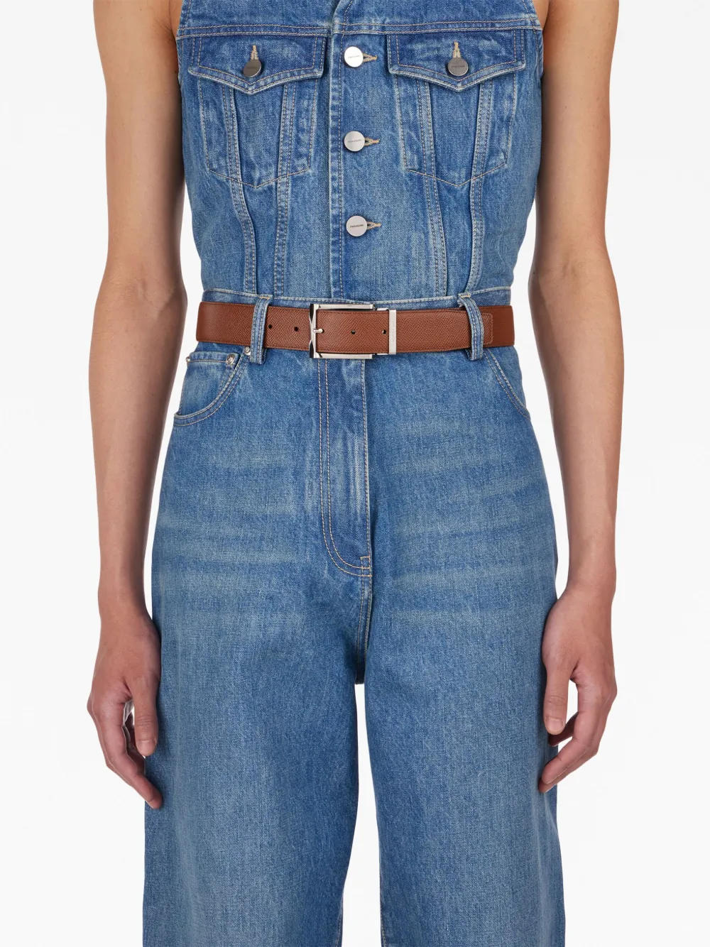 Двусторонний ремень с логотипом Ferragamo, коричневый
