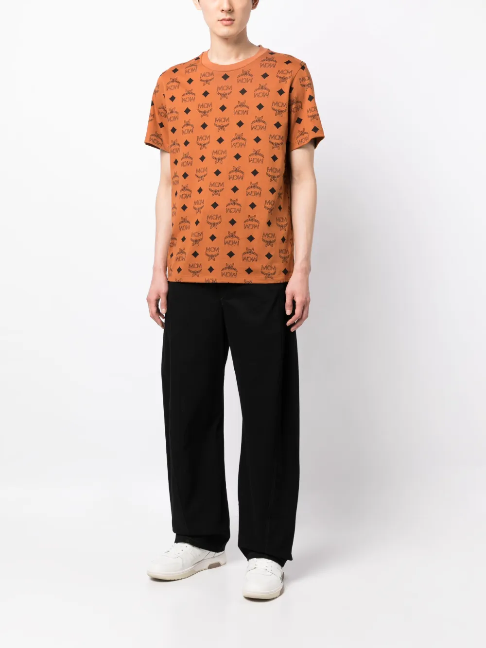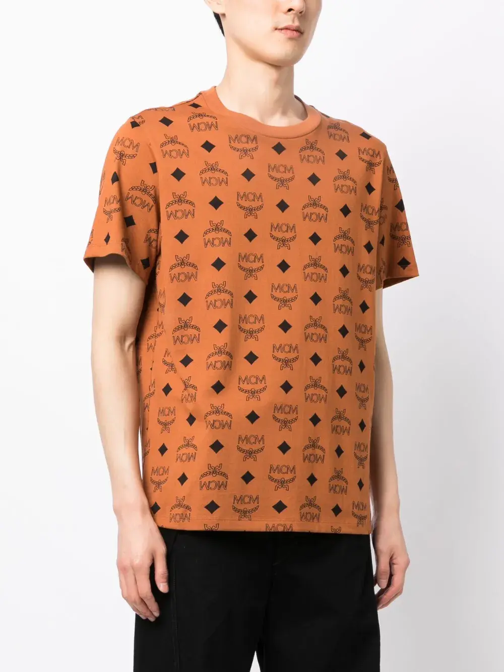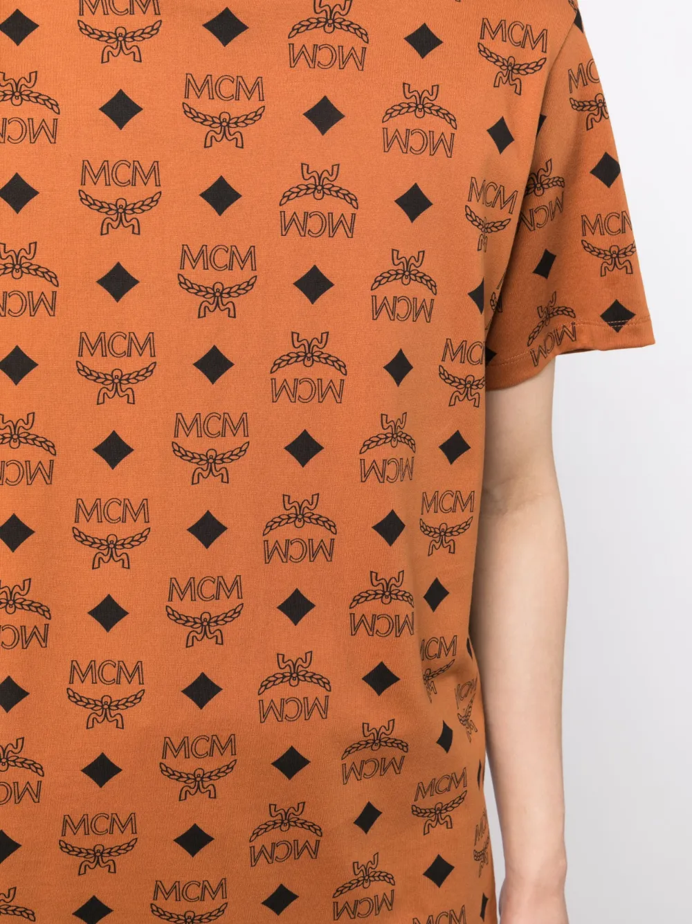 Коньячный коричневый, хлопок, монограмма, круглый вырез, короткие рукава и прямой подол.