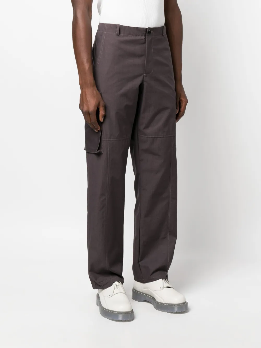 Темно-коричневый, контрастная строчка, петли для ремня, застежка на молнии и пуговице спереди, два вшитых кармана по бокам, два накладных кармана по бокам и асимметричный подол. Узнать больше о том, какие товары получают отметку «Ответственный выбор», можно из материала «Как мы оцениваем экологичность и этичность».