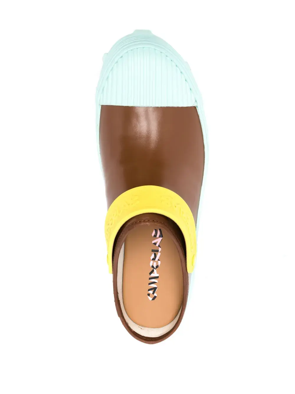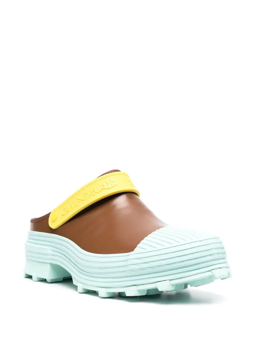 Подробнее о товаре: Телячья кожа, резиновый носок, дизайн колор-блок, без задника, ремешок на щиколотке и массивная резиновая подошва. Кожа в составе этого товара сделана на фабрике, сертифицированной организациями Leather Working Group (LWG) или ICEC. Это гарантирует, что производитель минимизировал негативное влияние материала на окружающую среду. Узнать больше о том, какие товары получают отметку «Ответственный выбор», можно из материала «Как мы оцениваем экологичность и этичность».
