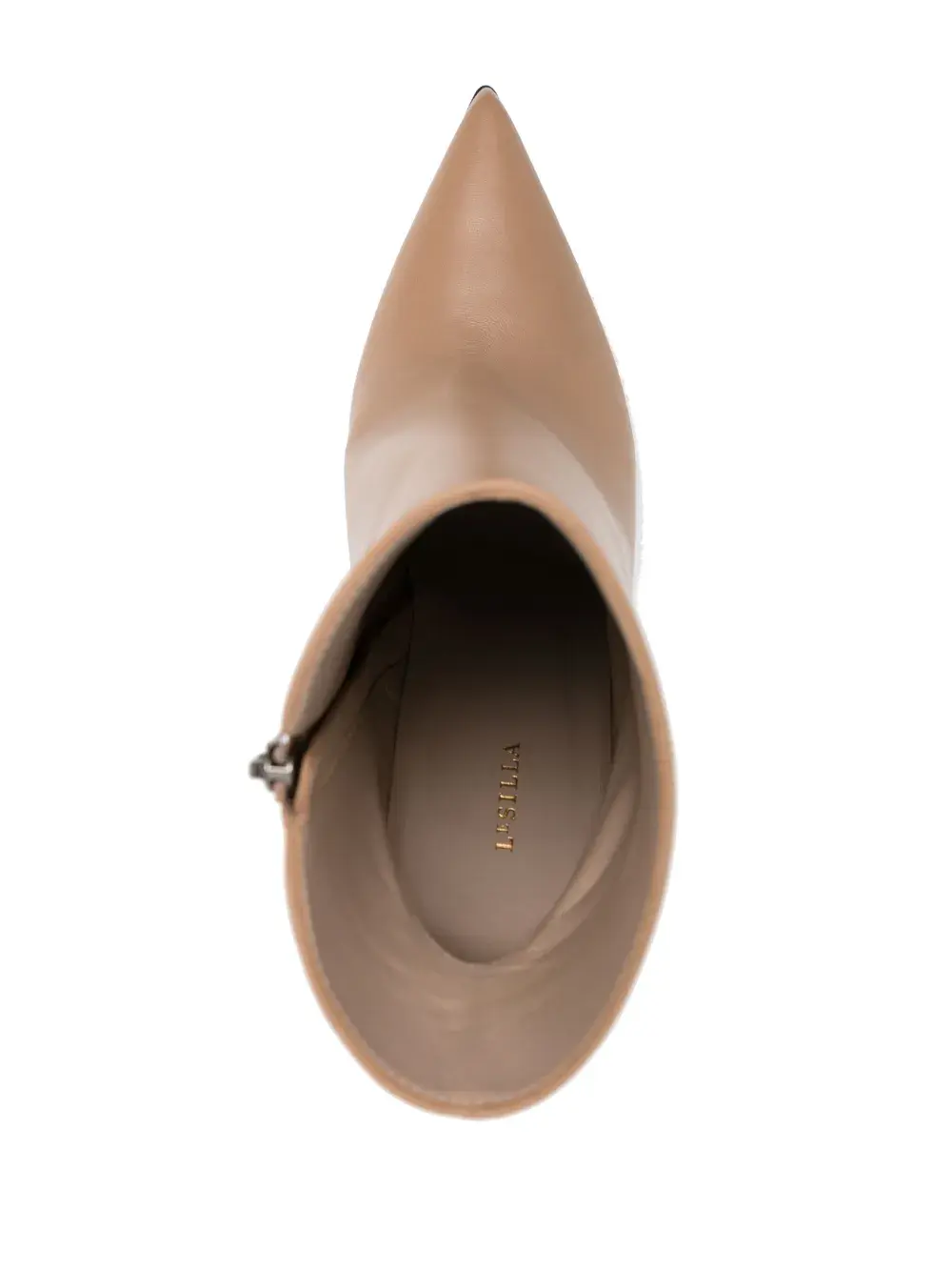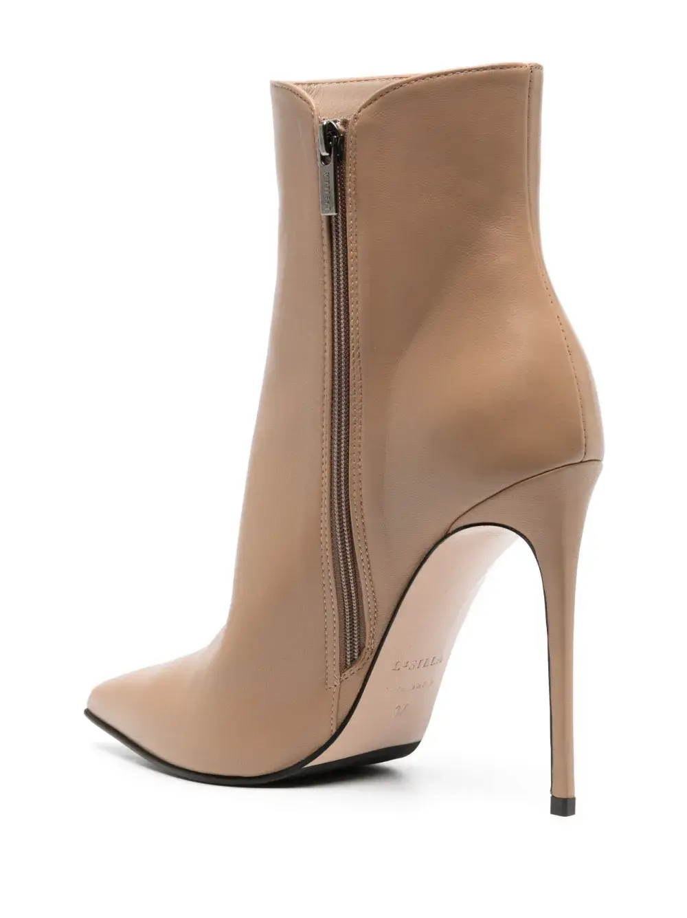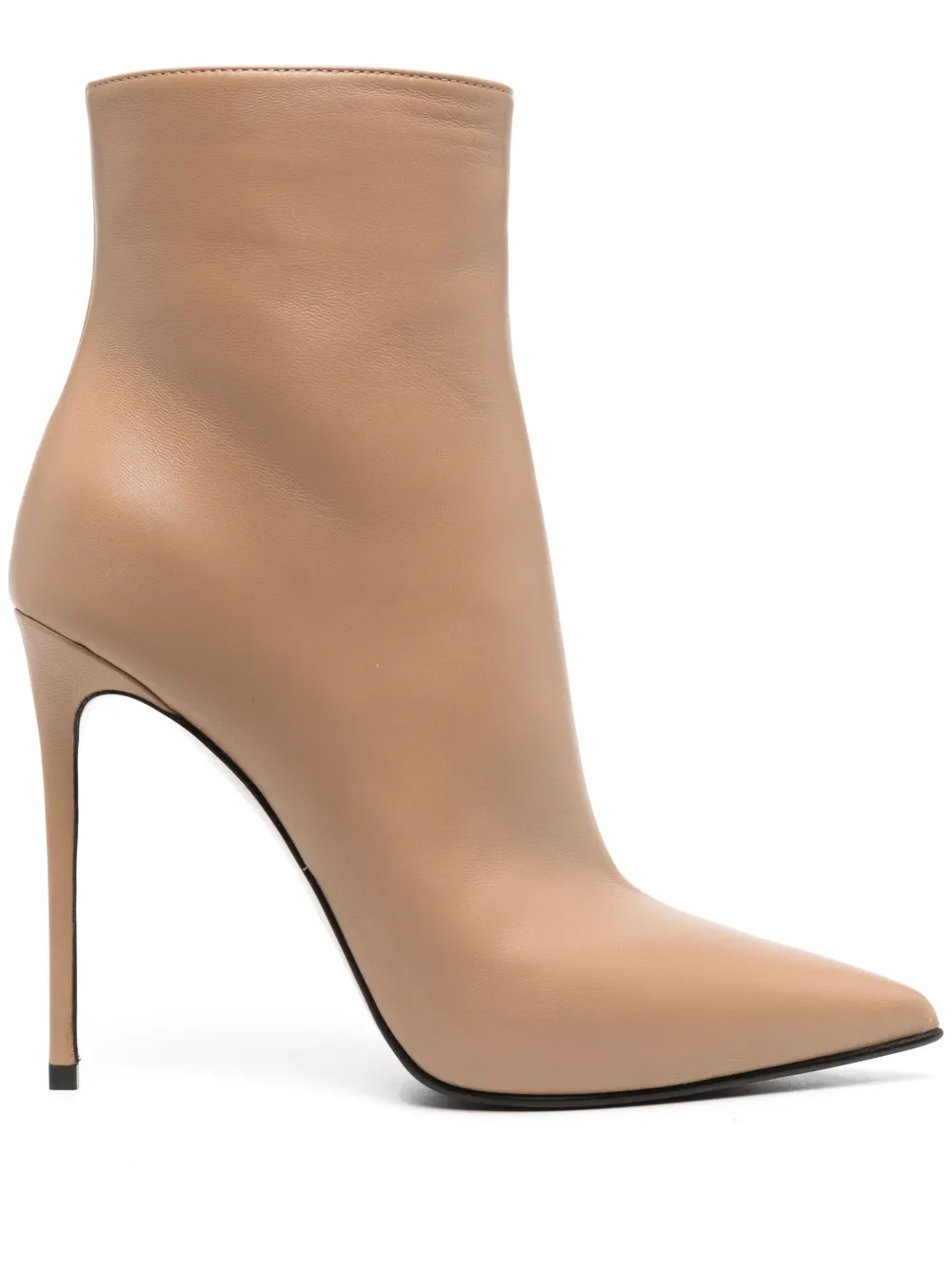 Расцветка Light Brown, телячья кожа, козья кожа, кожа наппа, стелька с логотипом, заостренный носок, застежка на молнии сбоку, высота по щиколотку и каблук на высокой шпильке.