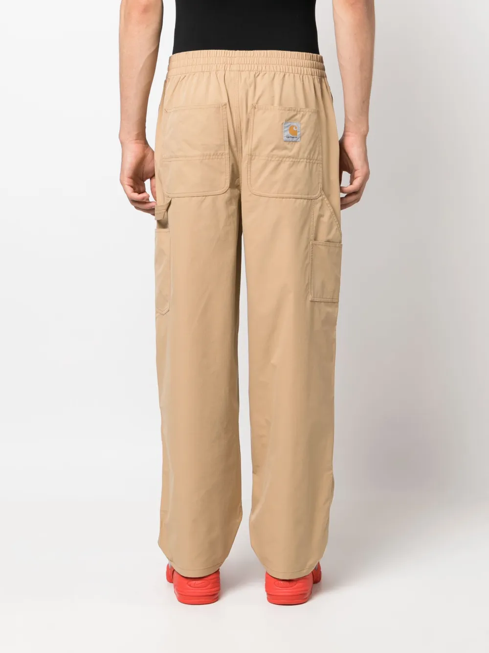Песочно-коричневый, рипстоп, нашивка с логотипом сзади, эластичный пояс, широкий крой, два вшитых кармана по бокам, два накладных кармана сзади и накладные карманы сбоку.