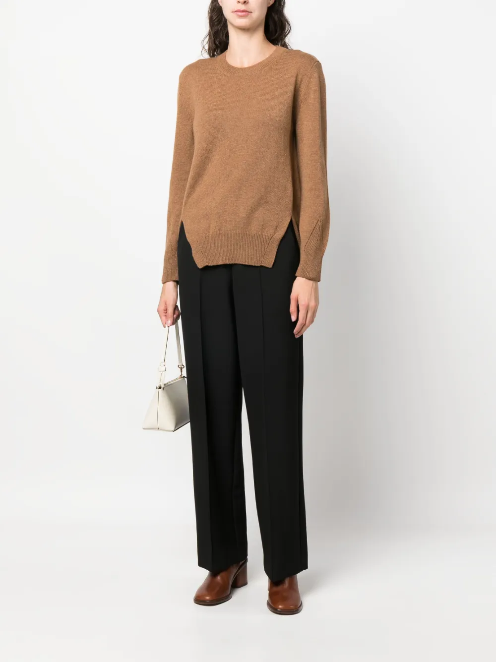 Коричневый, необработанная шерсть, круглый вырез, длинные рукава и боковые разрезы.