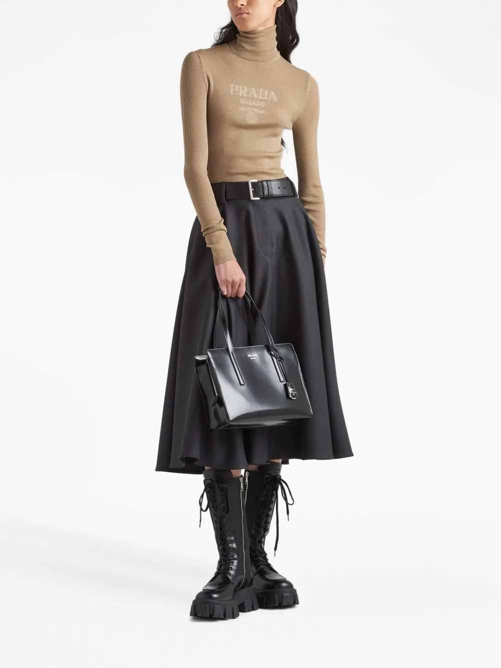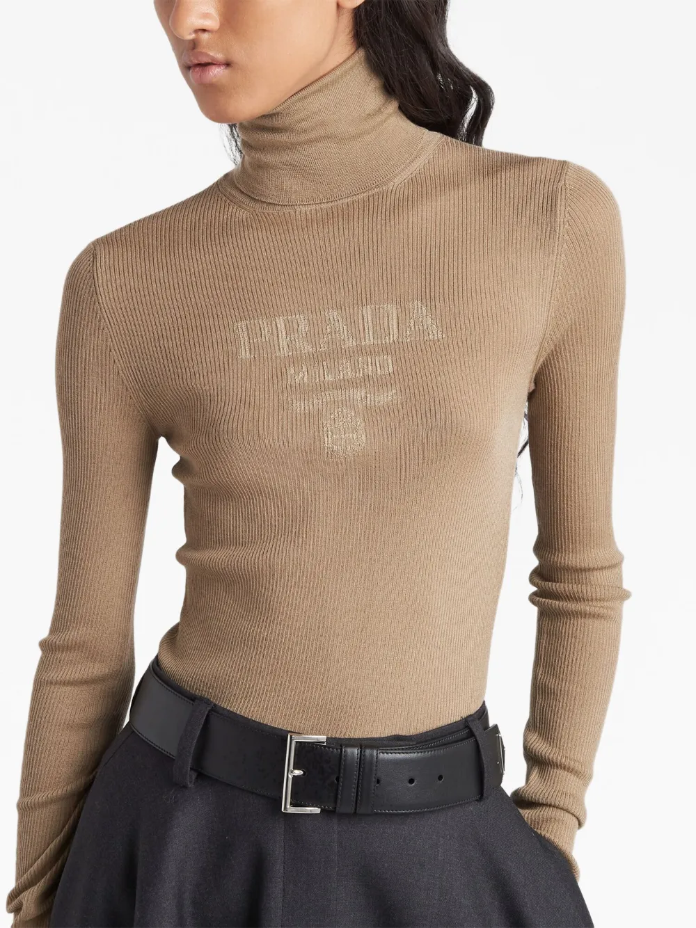 Джемпер с высоким воротником и логотипом Prada, коричневый