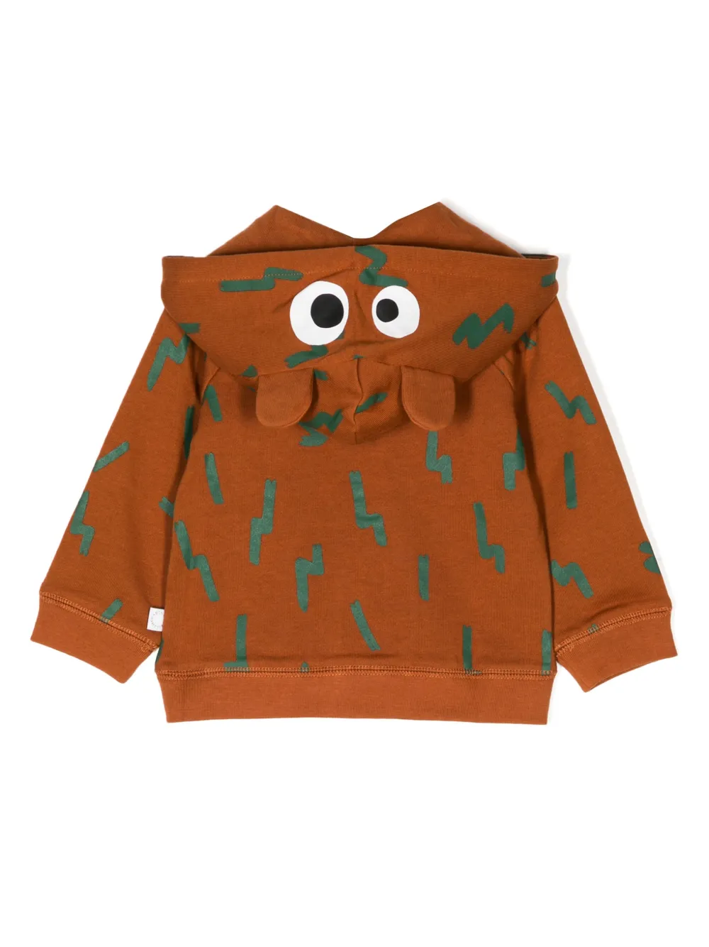 Коричневый, хлопок, сплошной графичный принт, объемная аппликация, застежка на молнии спереди, классический капюшон, длинные рукава и прямой подол. Узнать больше о том, какие товары получают отметку «Ответственный выбор», можно из материала «Как мы оцениваем экологичность и этичность».