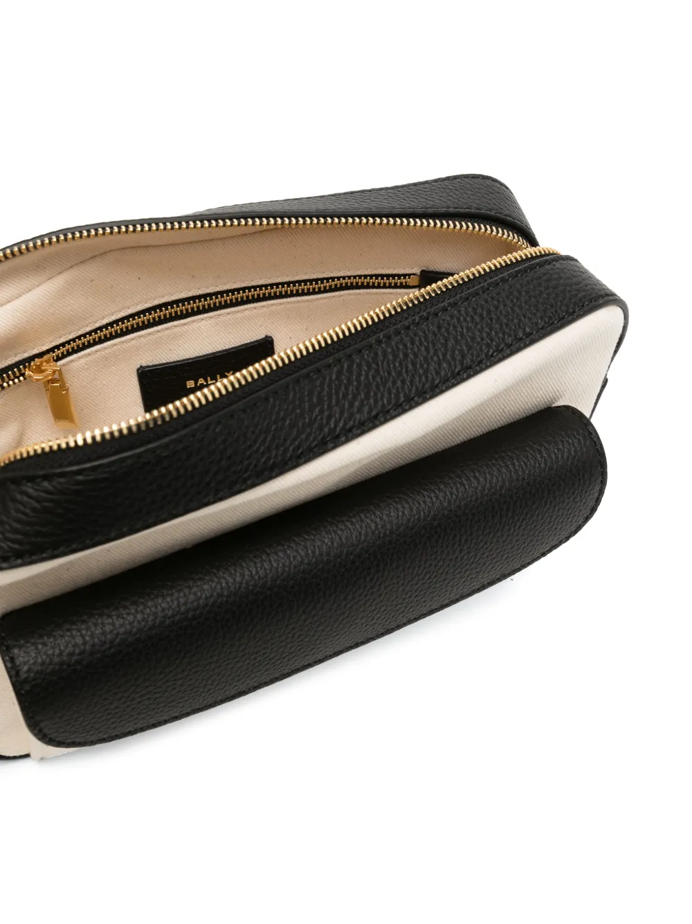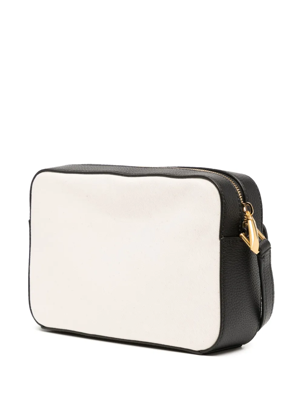 Белый/черный, канвас/кожа, логотип спереди, застежка на молнии сверху, золотистая фурнитура, регулируемый ремень на плечо, основное отделение, внутренний карман на молнии и карман-муфта.