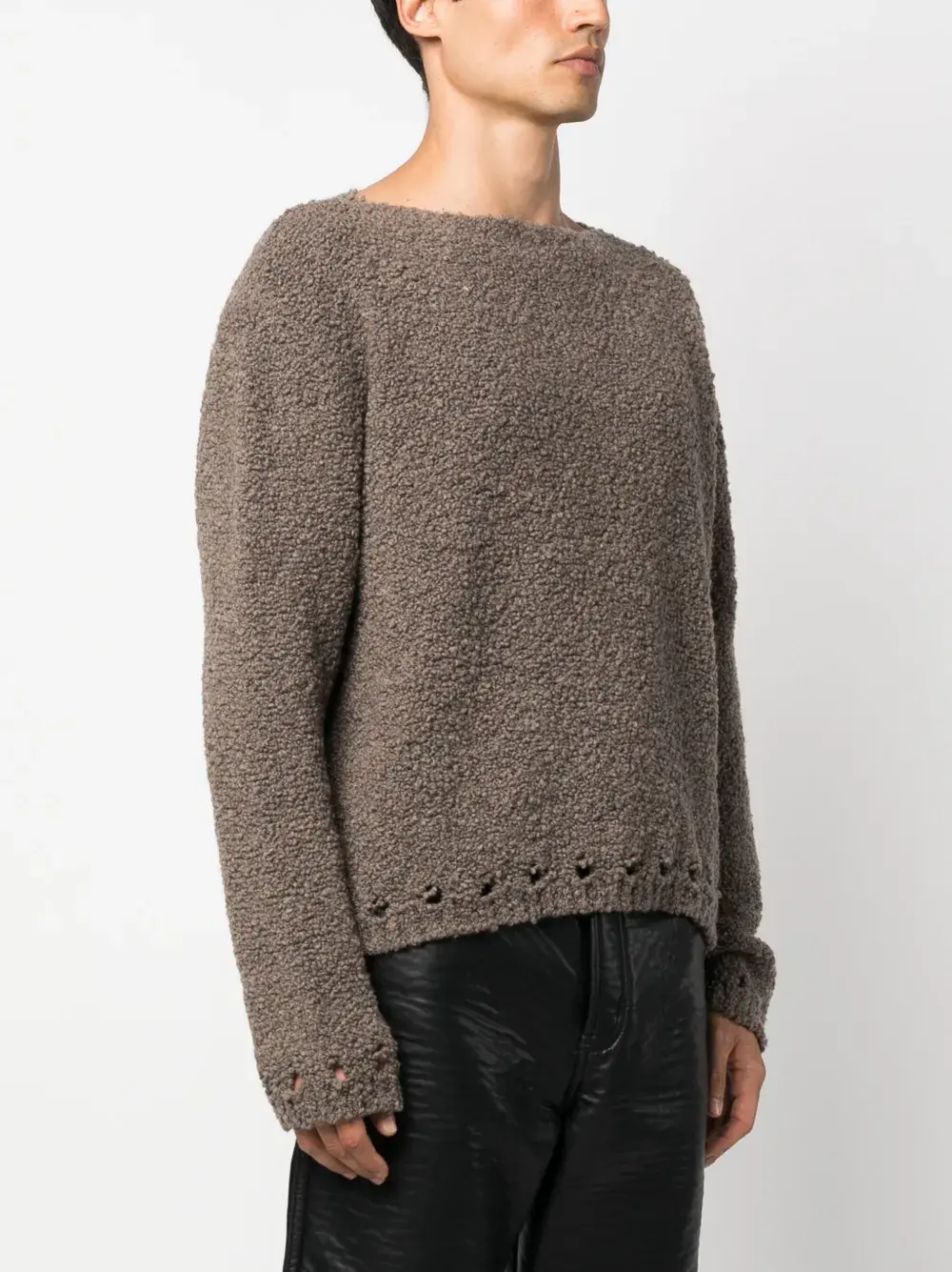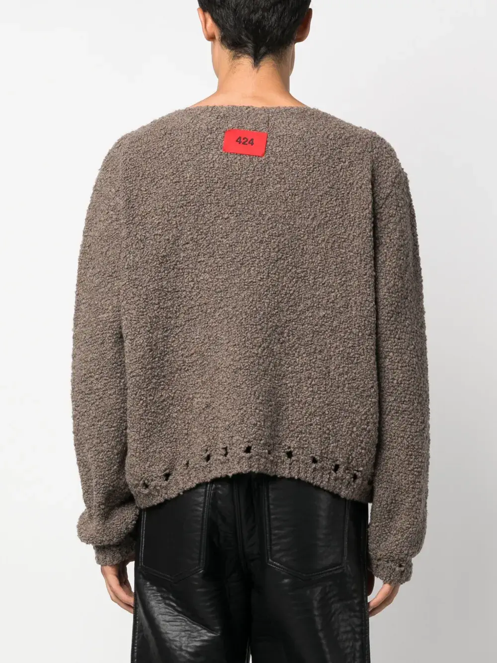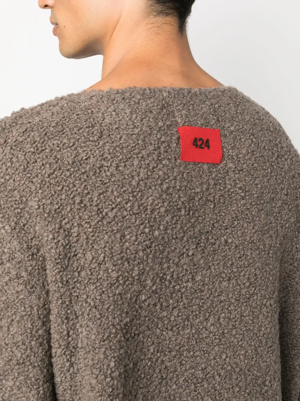 Расцветка Light Brown, смесовая необработанная шерсть, материал c флисовой текстурой, вырезные детали, нашивка с логотипом сзади, вырез-лодочка, длинные рукава, манжеты в рубчик и прямой подол.