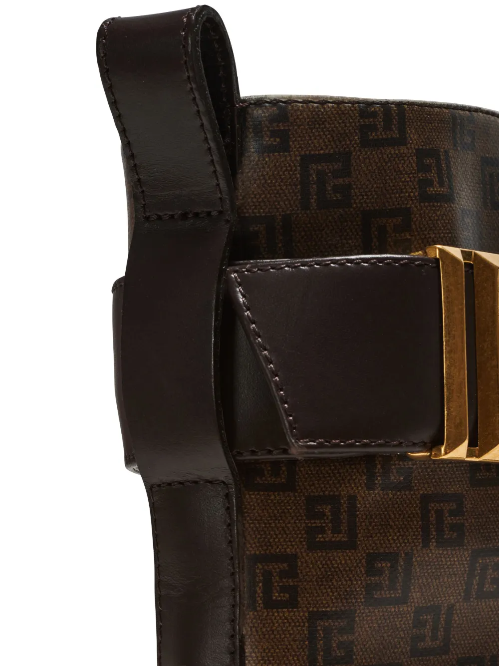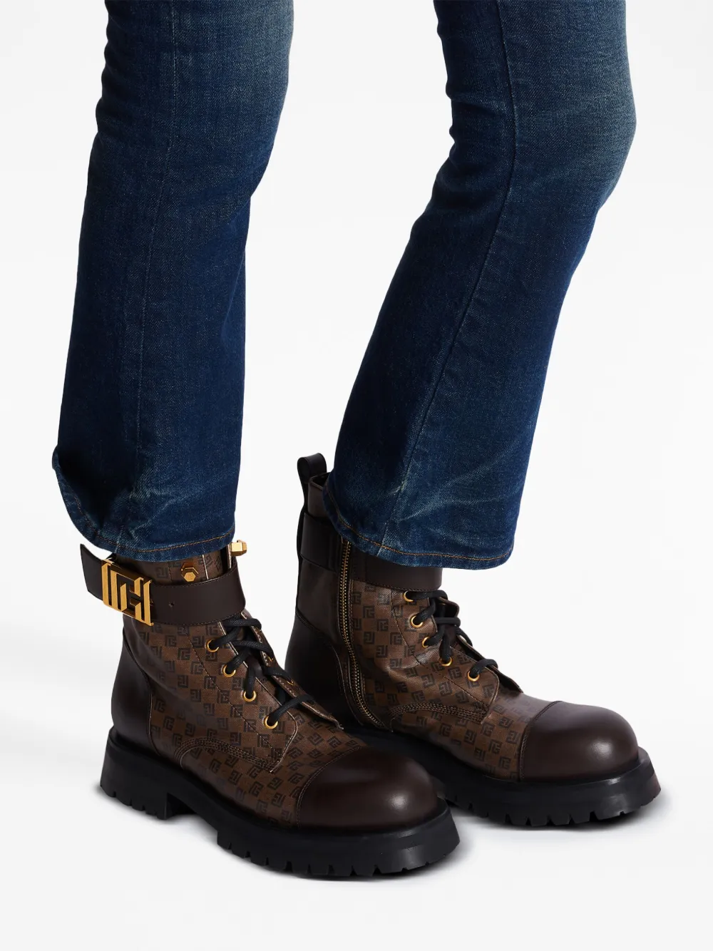 Расцветка Аnimalier Brown, кожа, принт с монограммой PB, золотистый металлический логотип, шнуровка спереди, золотистые заклепки, закругленный открытый носок, массивная резиновая подошва и ремешок на щиколотке с пряжкой.