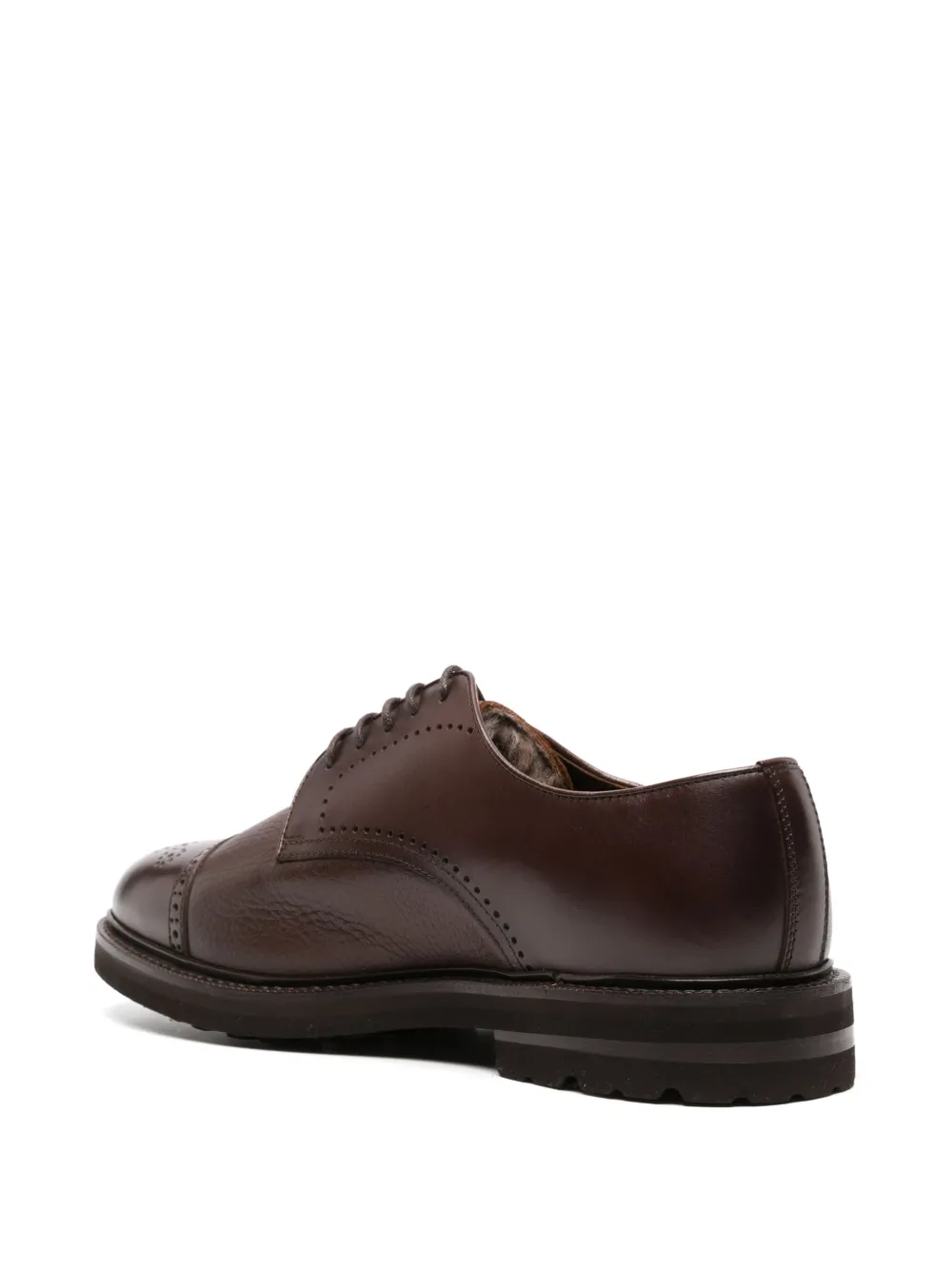 Расцветка Tobacco Brown, оленья кожа, закругленный носок, перфорация, шнуровка спереди, кожаная стелька с логотипом и плоская резиновая подошва.
