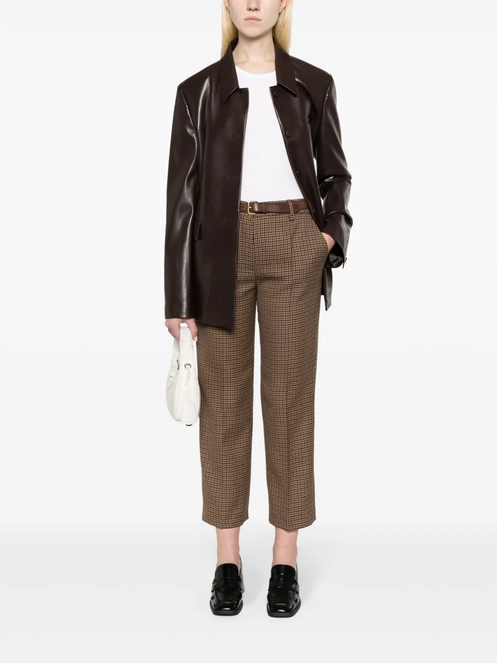 Шерстяные брюки в ломаную клетку Prada, коричневый