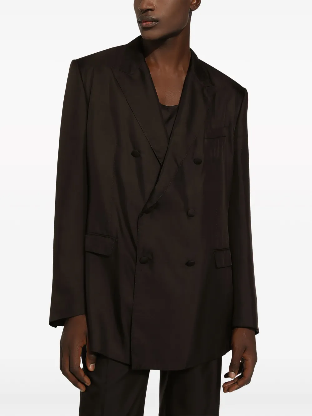 Шелковый двубортный пиджак DOLCE & GABBANA, коричневый