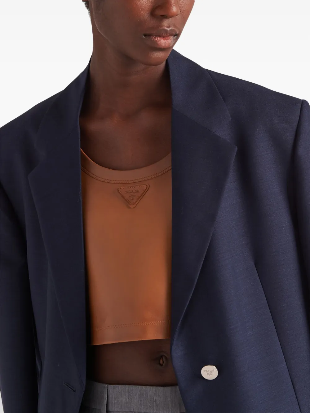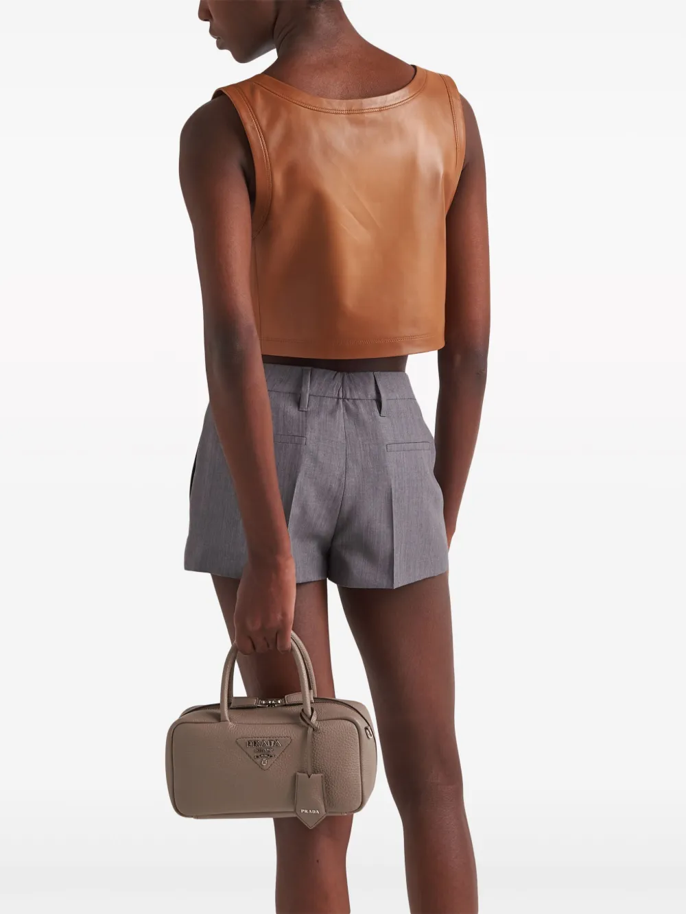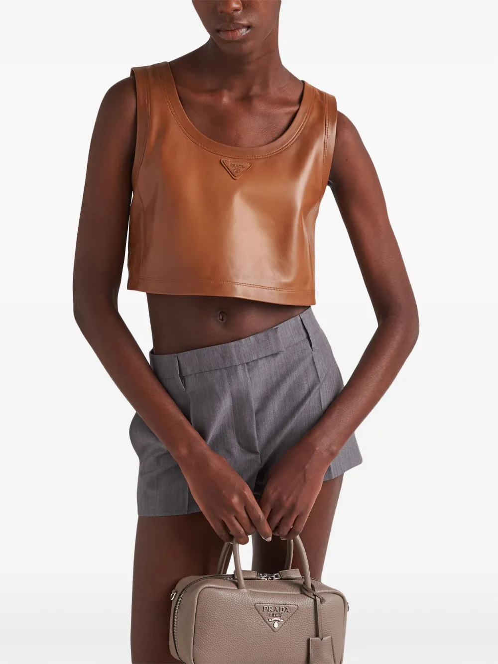 Укороченный топ из кожи наппа Prada, коричневый