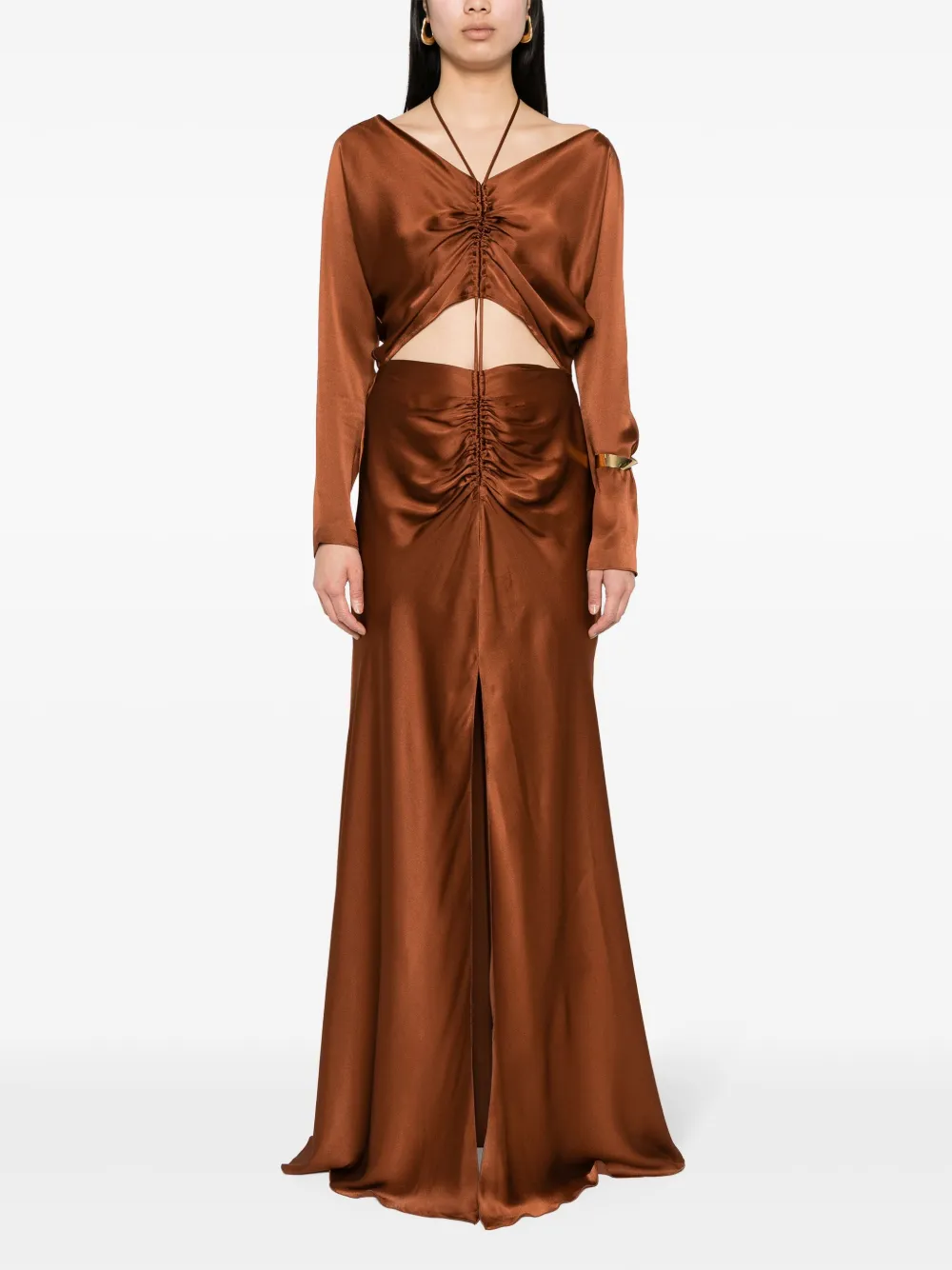Атласное платье миди с вырезами Alberta Ferretti, коричневый 104 111₽