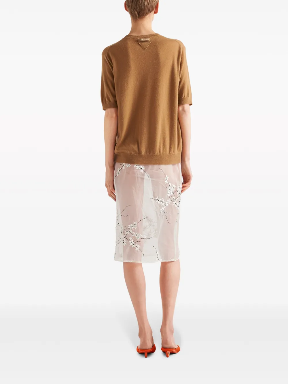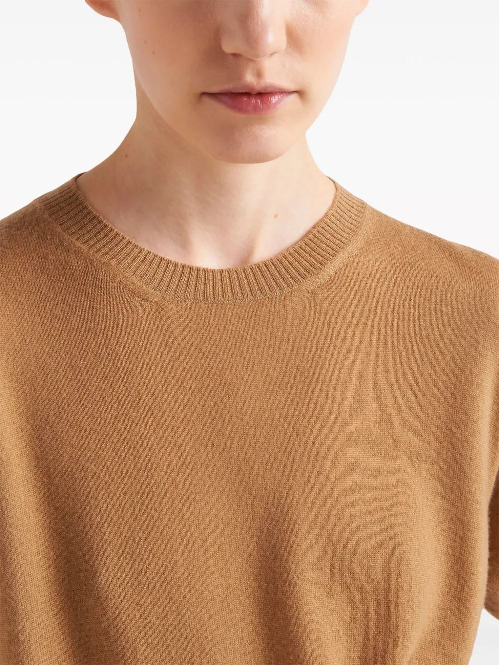 Кашемировый топ с логотипом Prada, коричневый 186 312₽