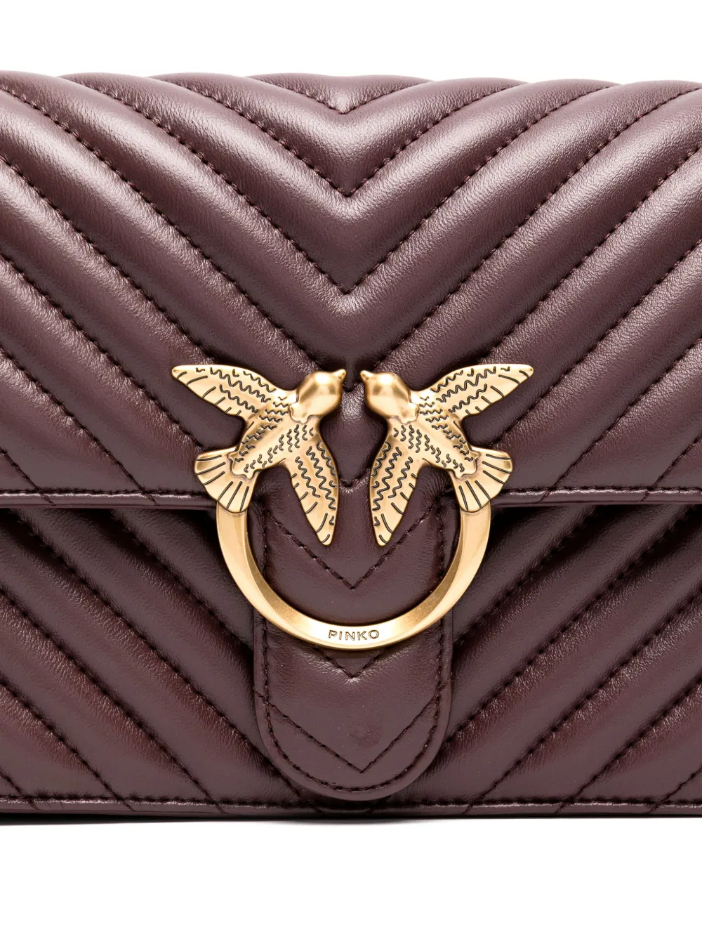 Подробнее о товаре: • темно-бордовый • овечья кожа • гладкая текстура кожи • стеганый дизайн с узором шеврон • откидной верх на магнитной застежке • ремень на плечо с цепочной деталью • пряжка Love Birds • вышитый логотип Love Birds сзади • несколько отделений • тисненый логотип внутри • внутренний накладной карман • внутренний карман на молнии • замшевая подкладка • В комплект входит мешок-пыльник для хранения.