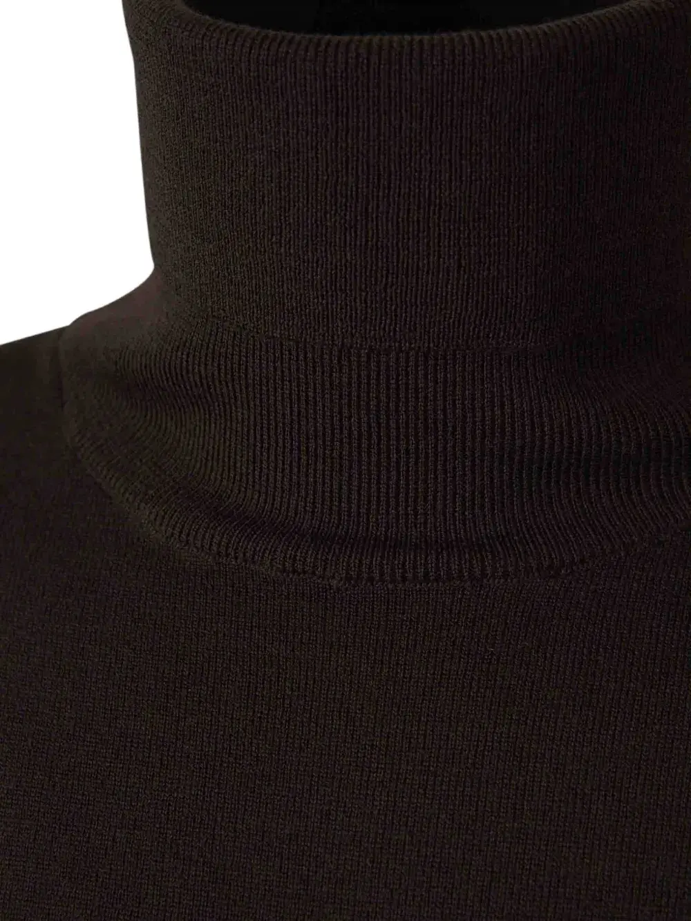 Шоколадно-коричневого цвета, трикотажная конструкция, водолазка, длинные рукава, прямой подол