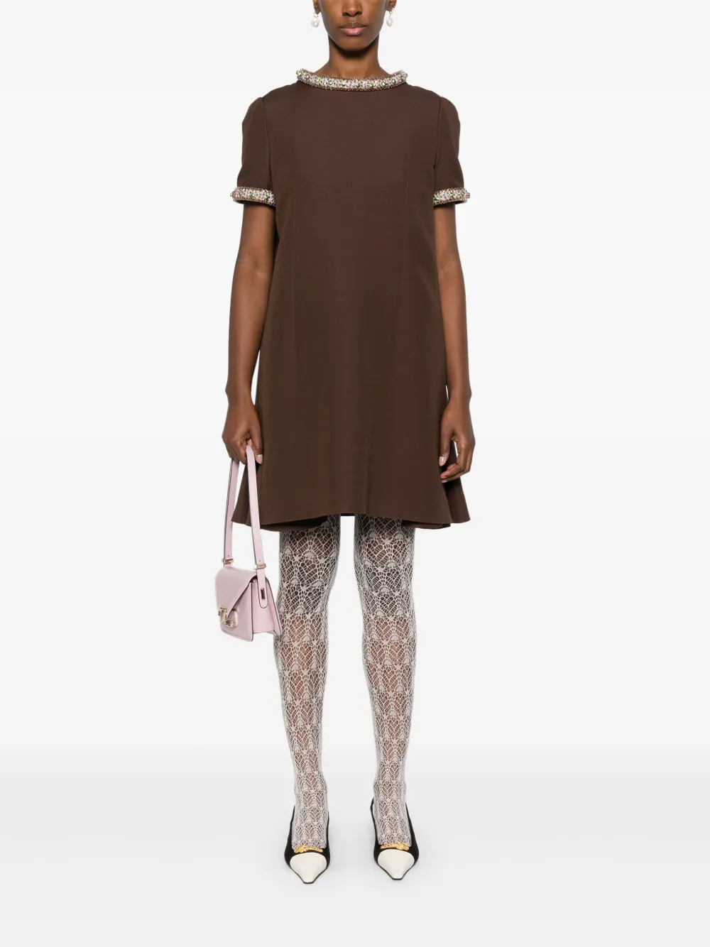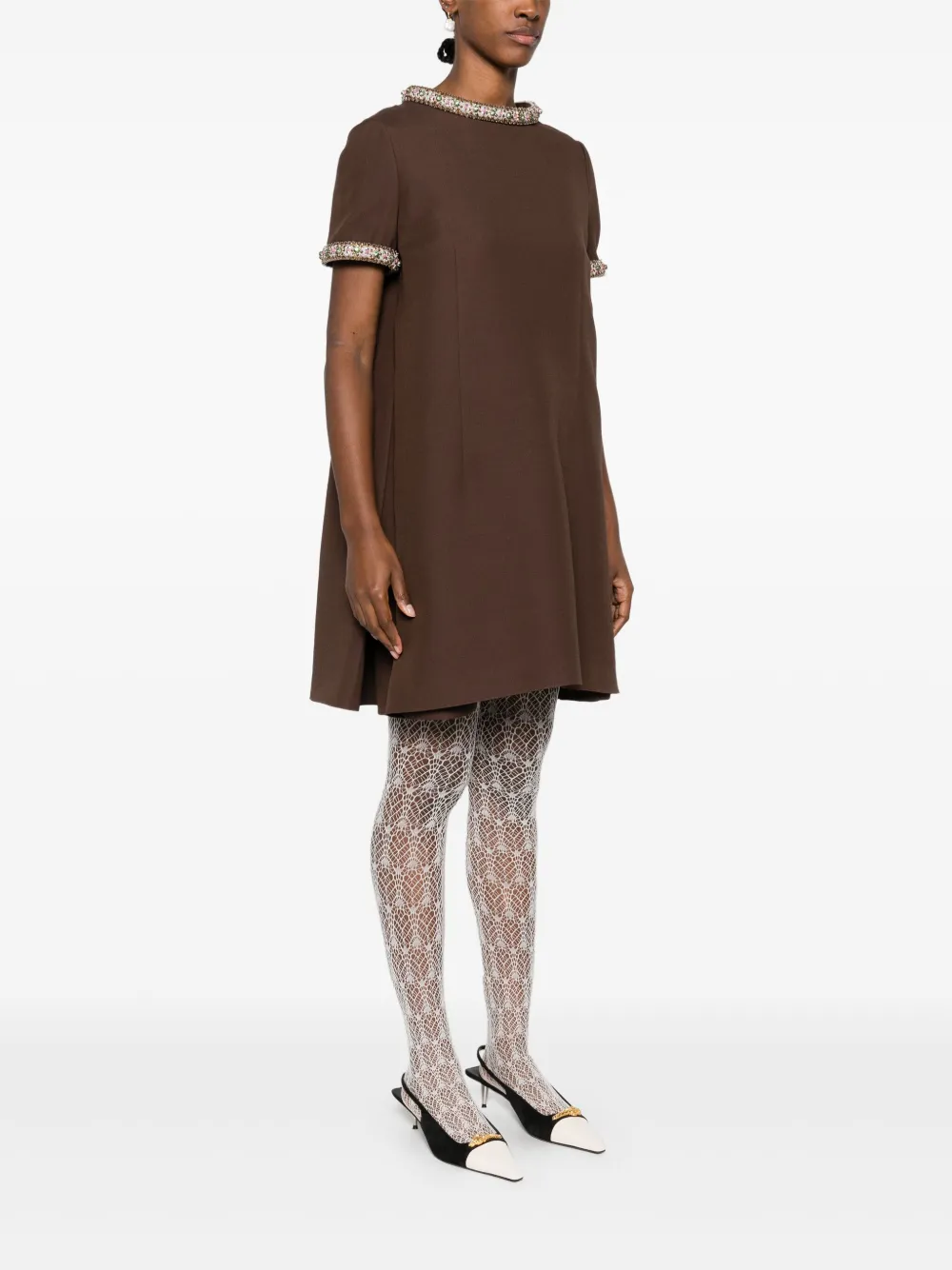 Креповое платье мини с кристаллами VALENTINO GARAVANI, коричневый