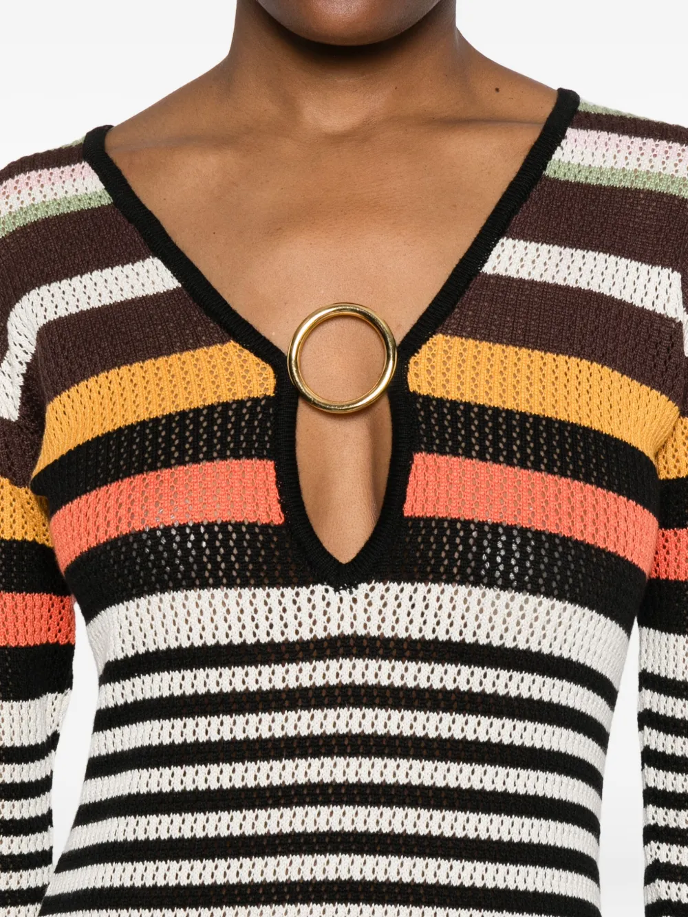 Шоколадно-коричневый с длинными рукавами и рисунком в горизонтальную полоску