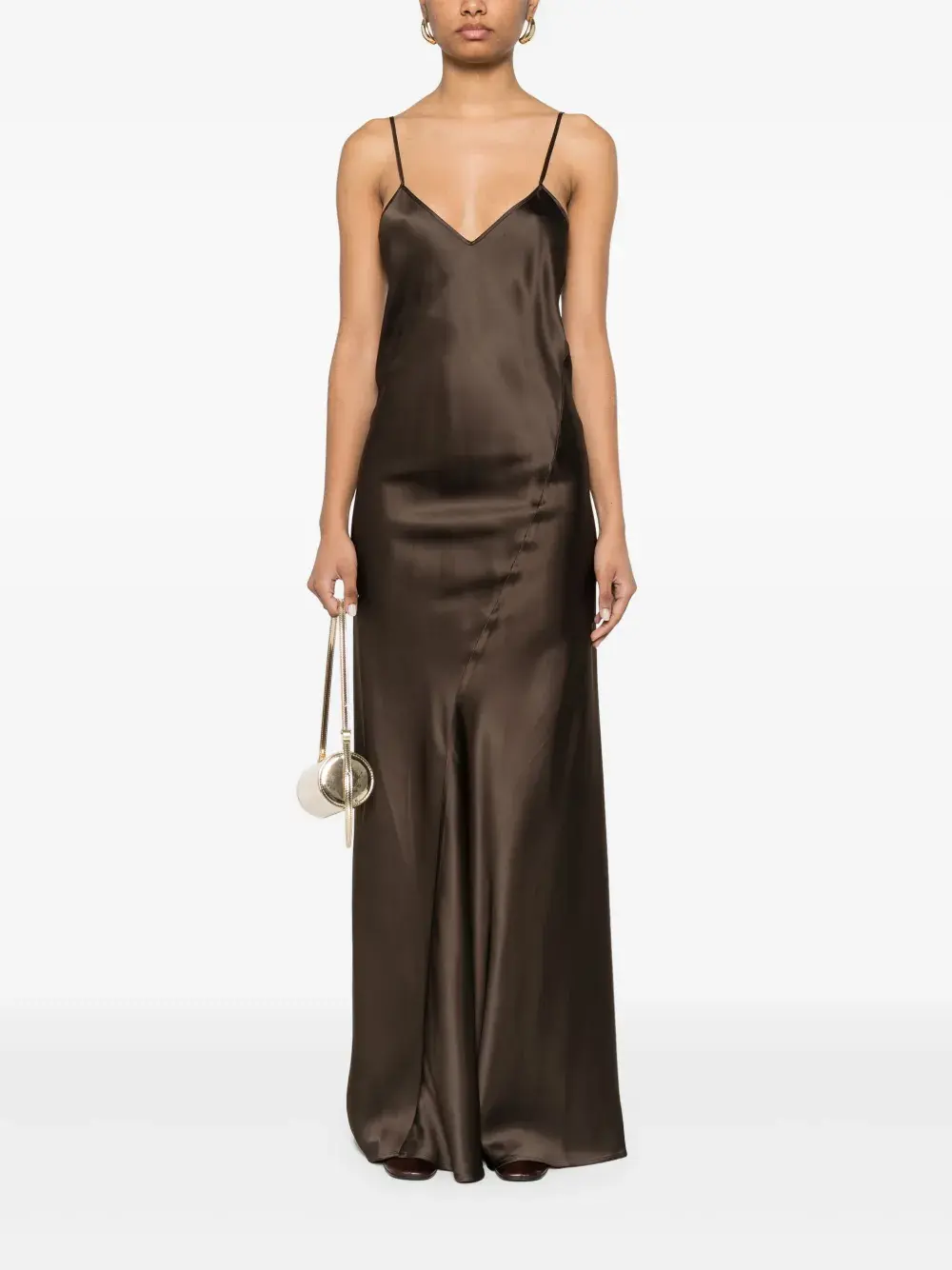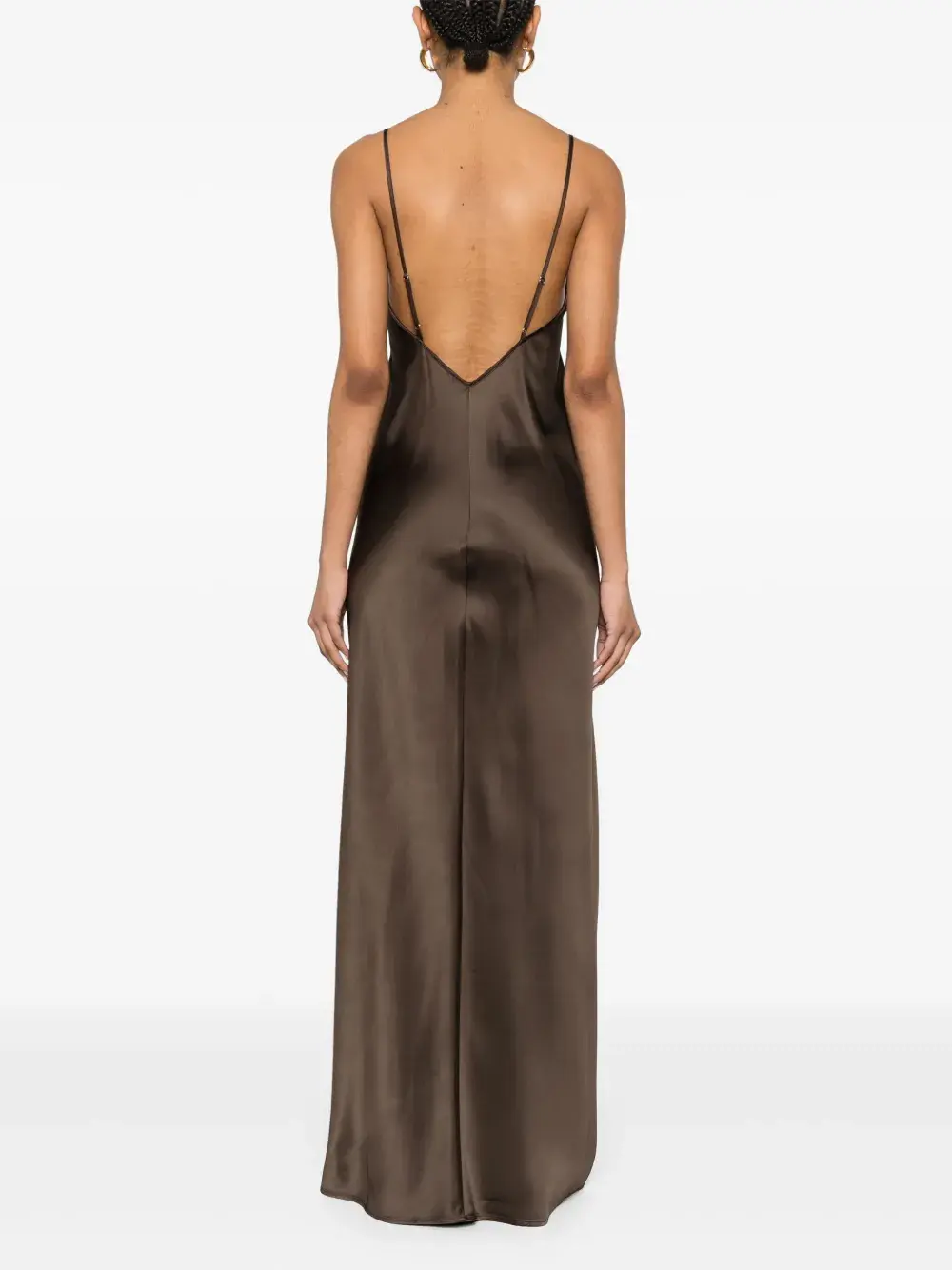 Кофейно-коричневого цвета, регулируемые тонкие бретельки, V-образный вырез, V-образная спинка