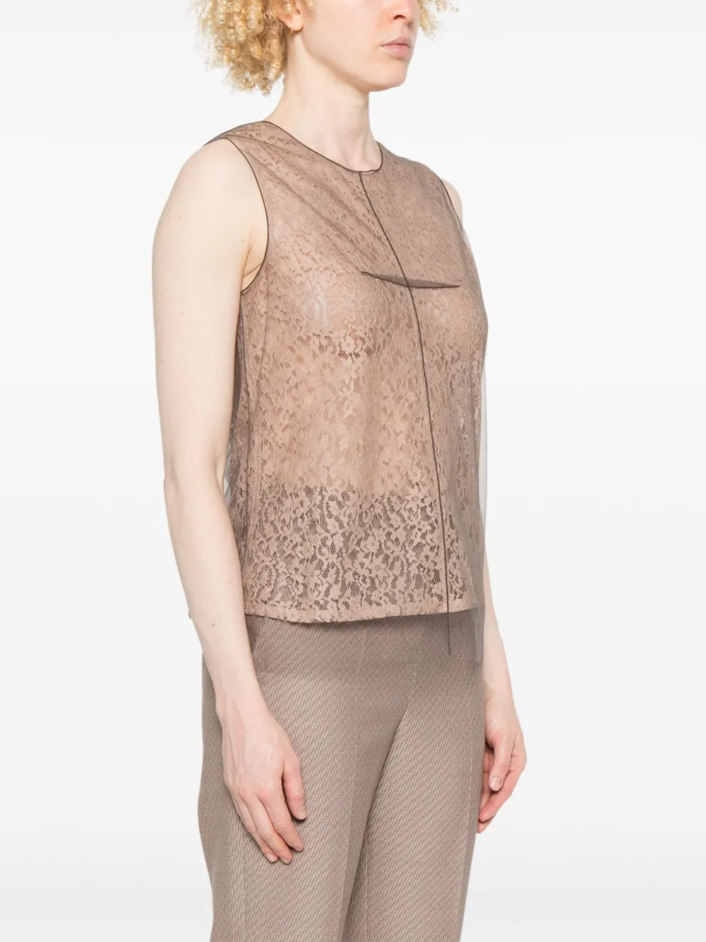 Кружевной топ FENDI, коричневый