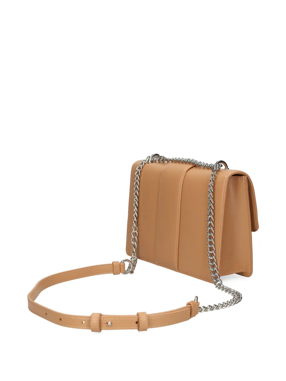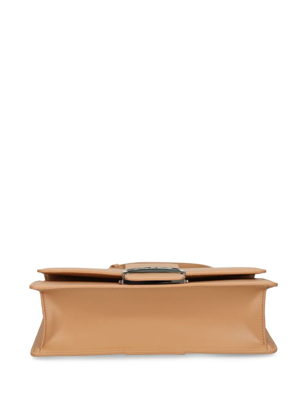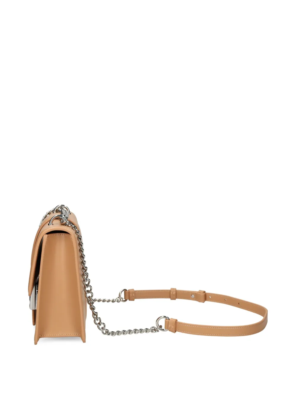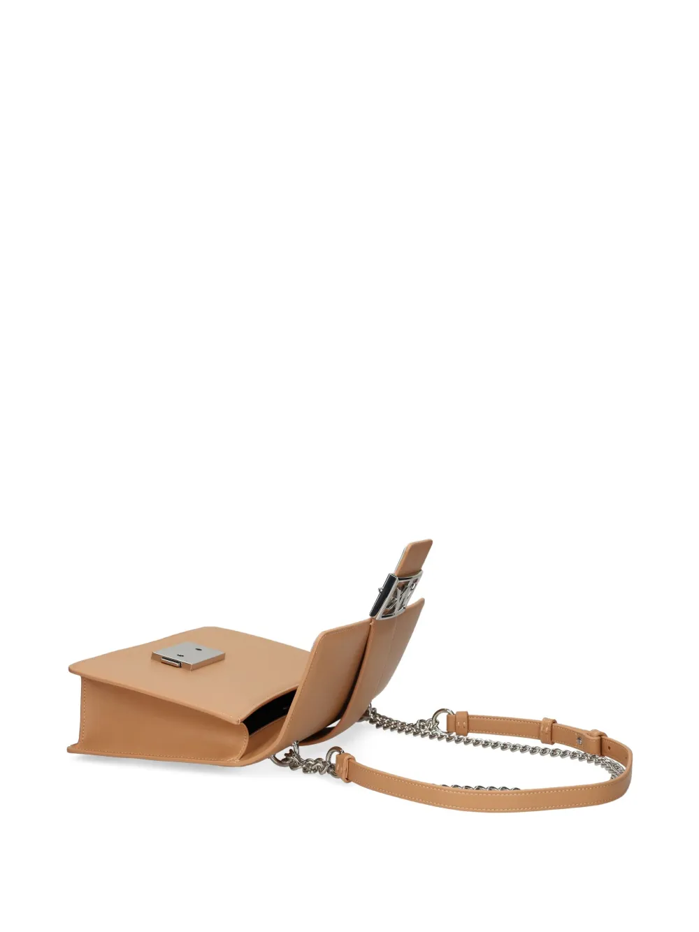 Светло-коричневая магнитная застежка, плечевой ремень-цепочка, основное отделение, серебристая пластинка с логотипом