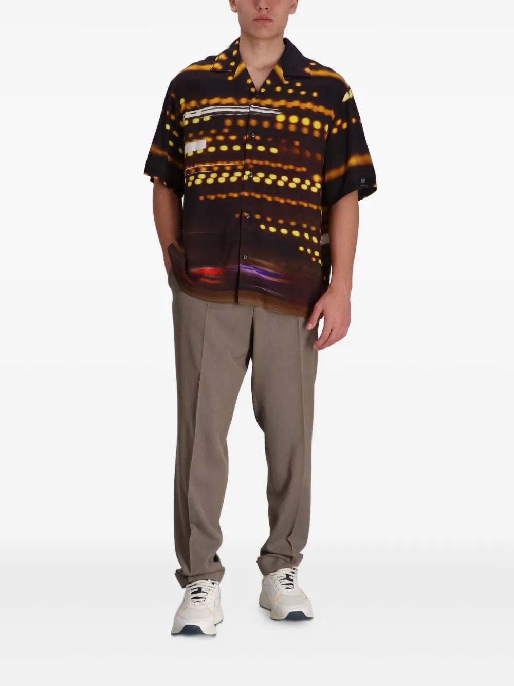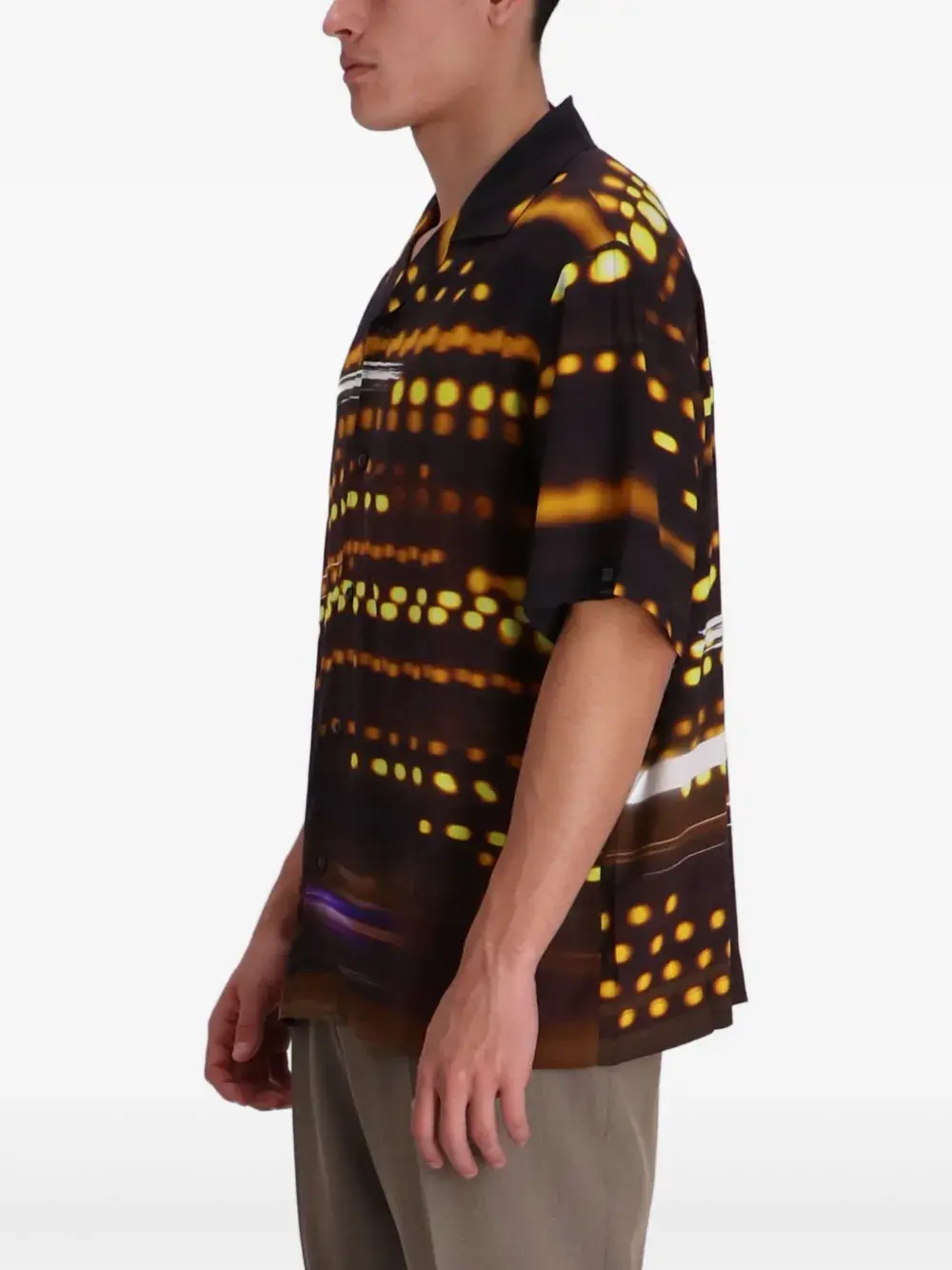 Разноцветные пуговицы спереди, воротник-стойка, короткие рукава