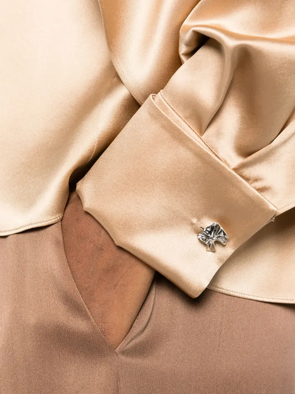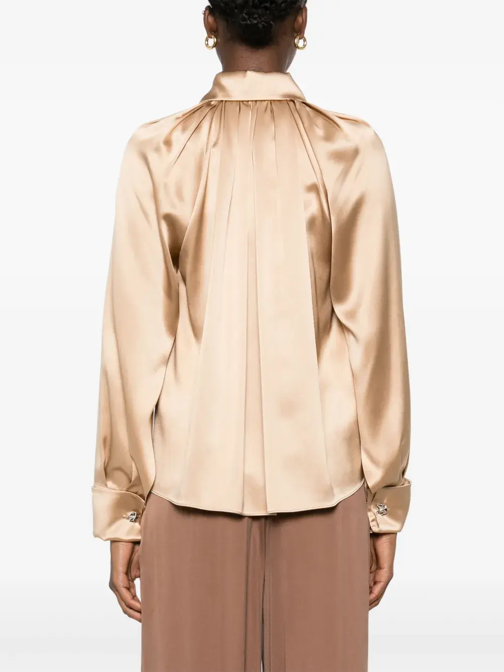 Планка на пуговицах спереди цвета верблюжьей шерсти, французские манжеты, складки, заостренный плоский воротник