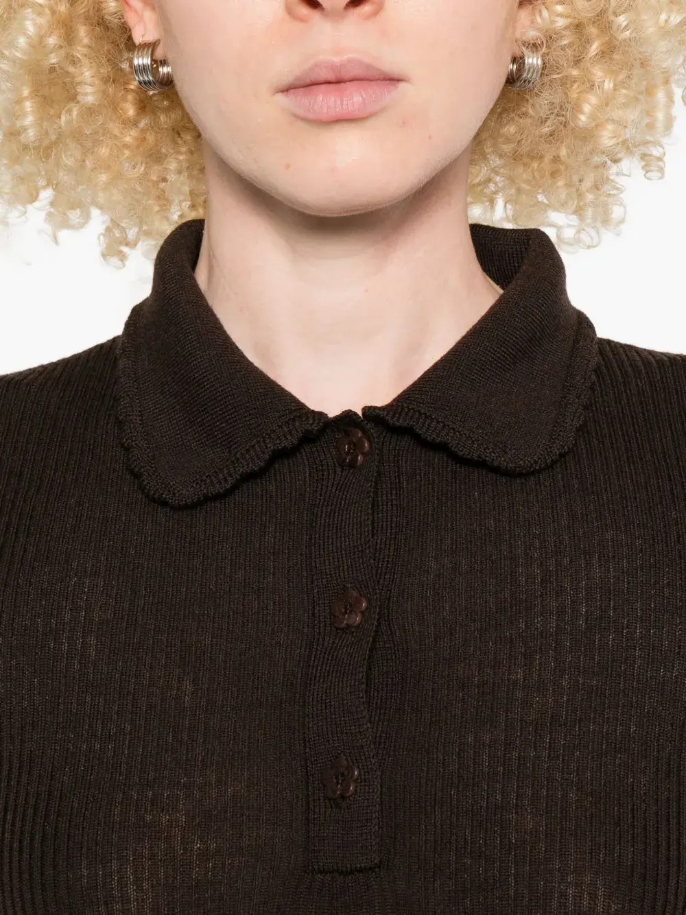Короткая модель кофейного цвета с застежкой на пуговицы спереди, ребристый трикотаж, длинные рукава