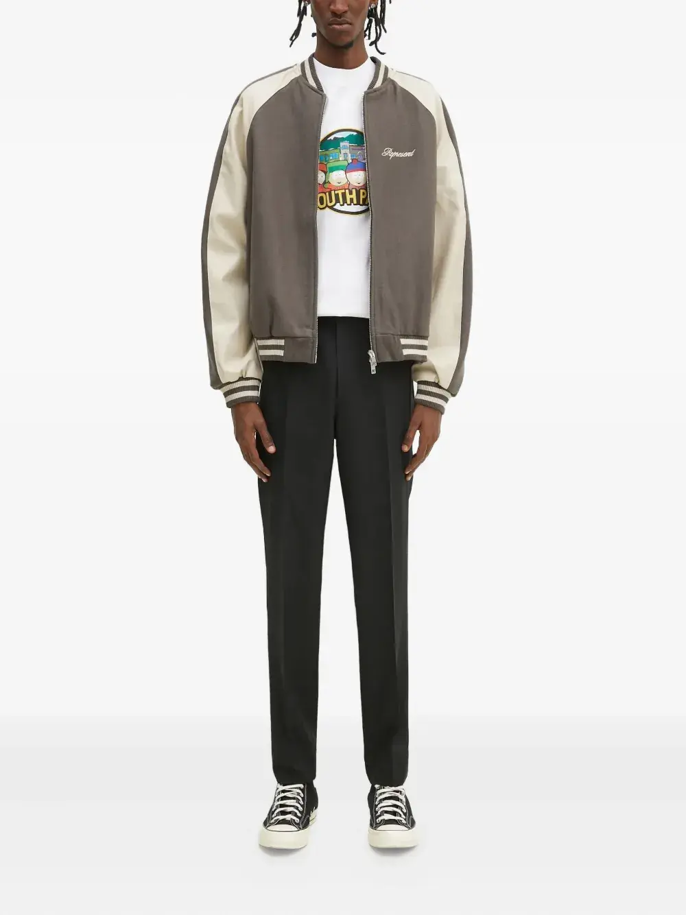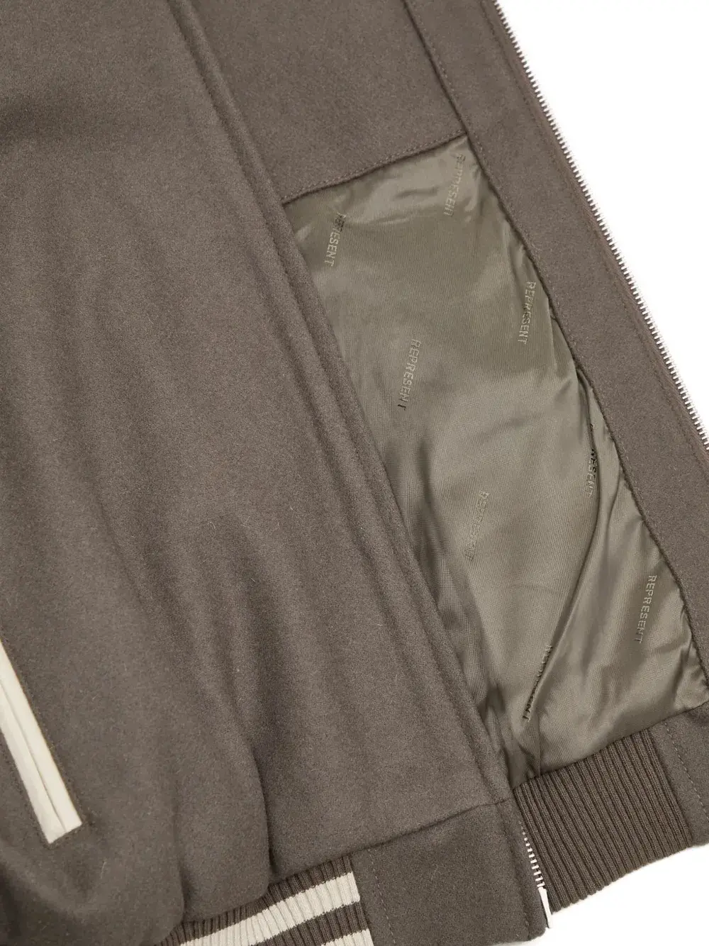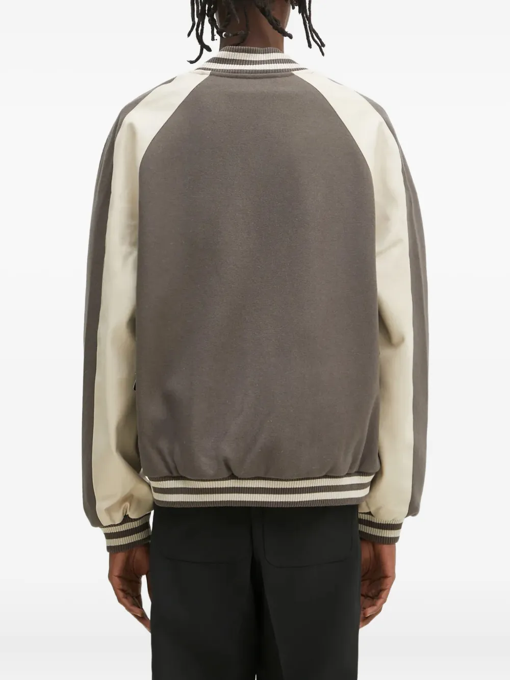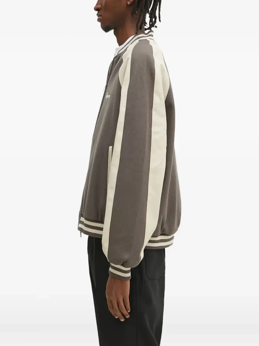 Коричневые рукава в бейсбольном стиле, контрастные вставки, ребристые манжеты, застежка-молния, вышитый логотип