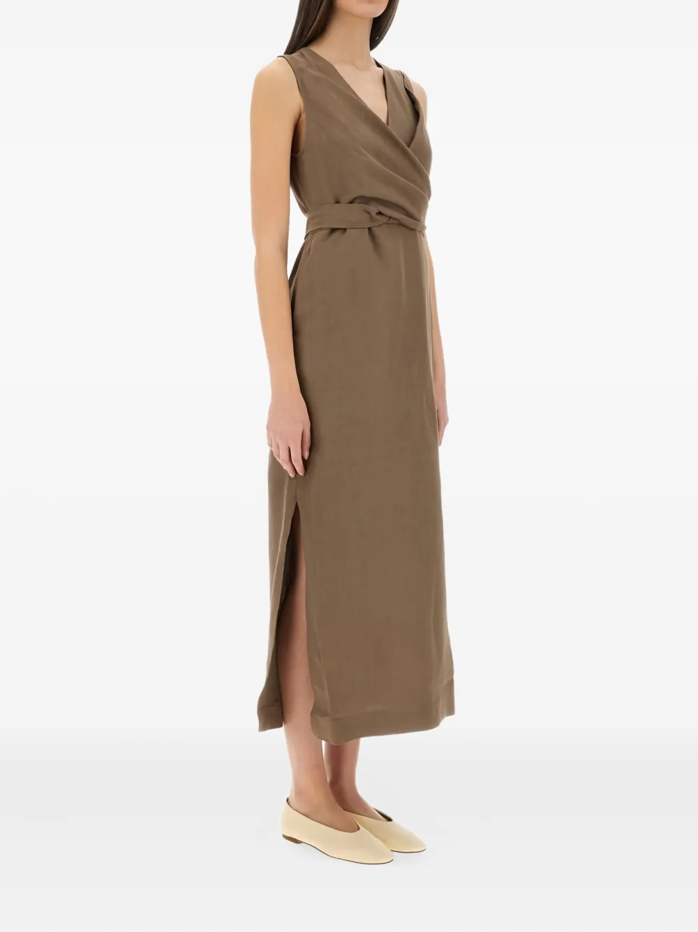 Платье без рукавов с запахом Brunello Cucinelli, коричневый