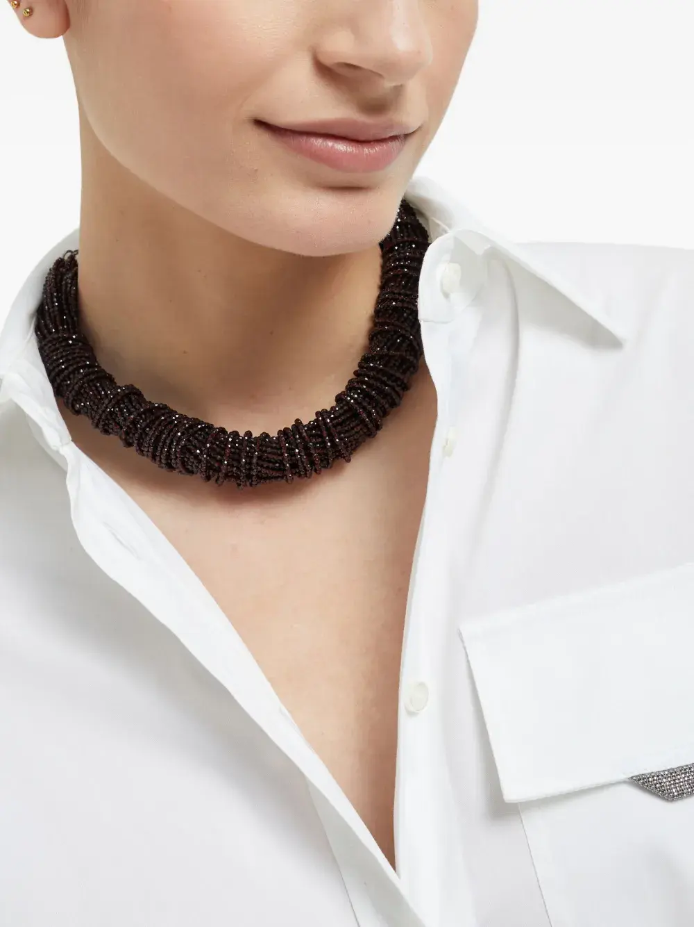 Колье с бусинами Brunello Cucinelli, коричневый