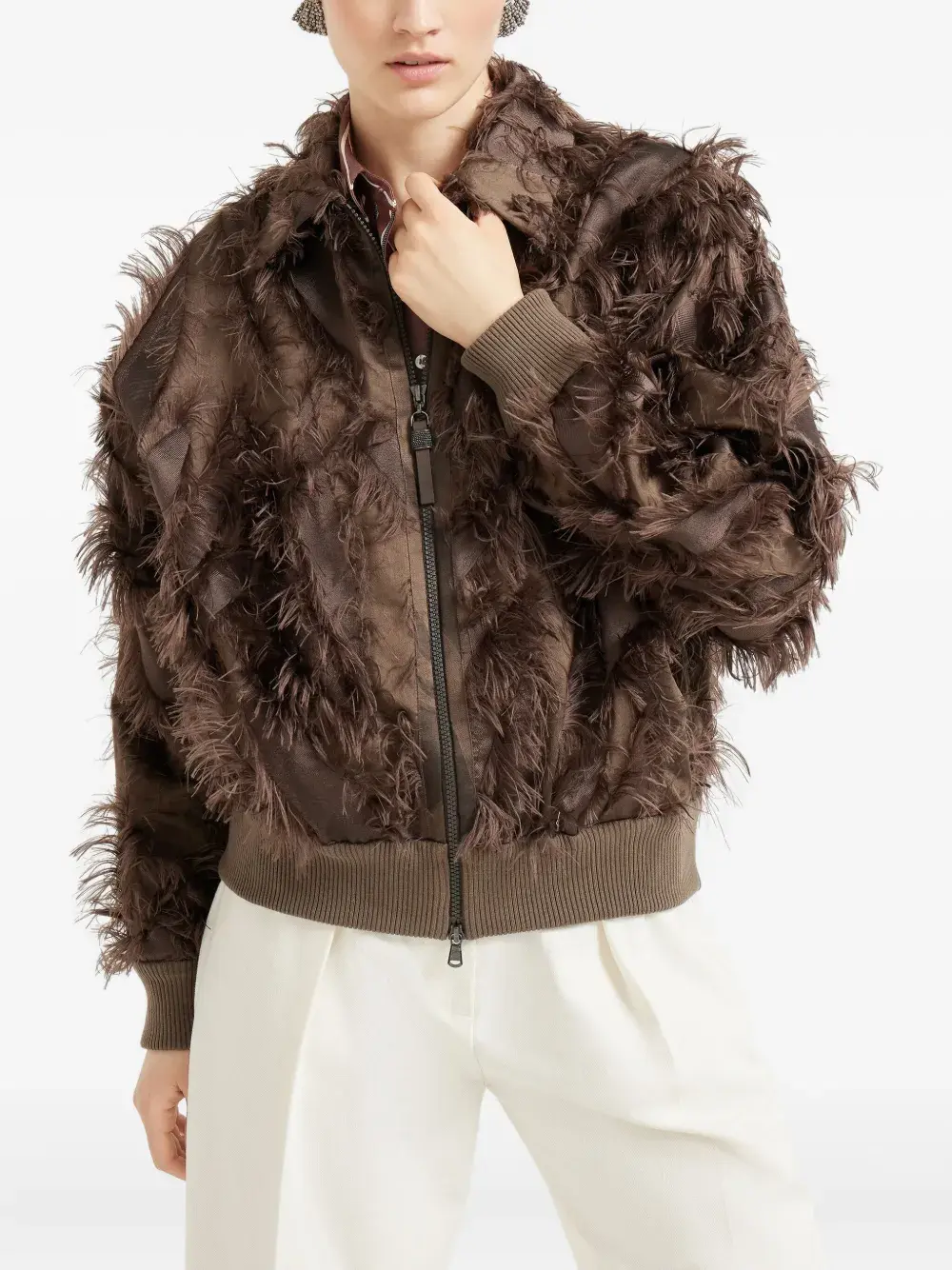 Бомбер с перьями Brunello Cucinelli, коричневый