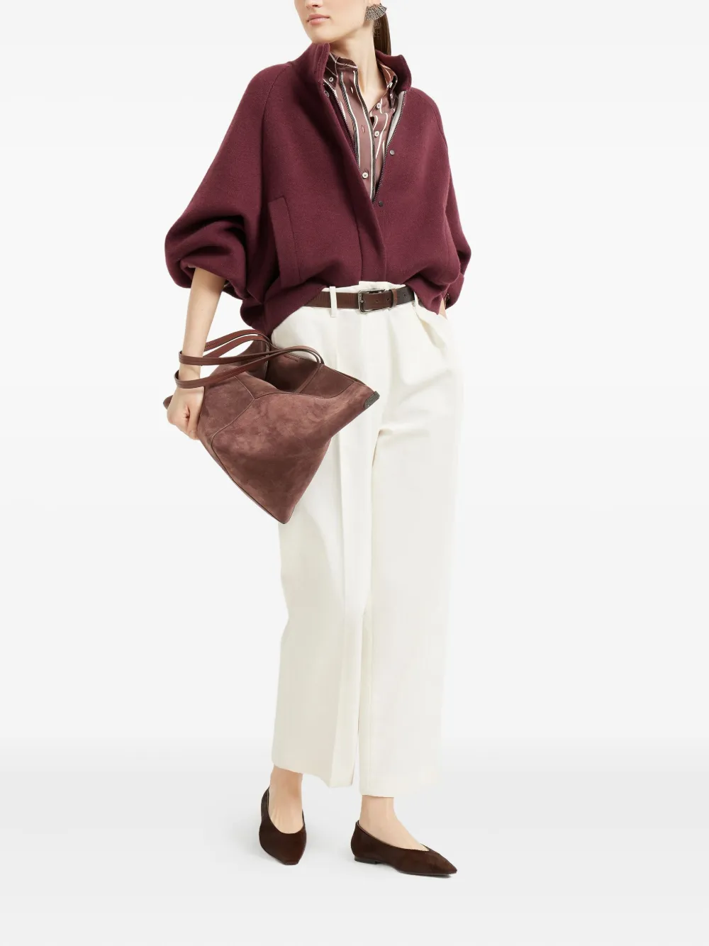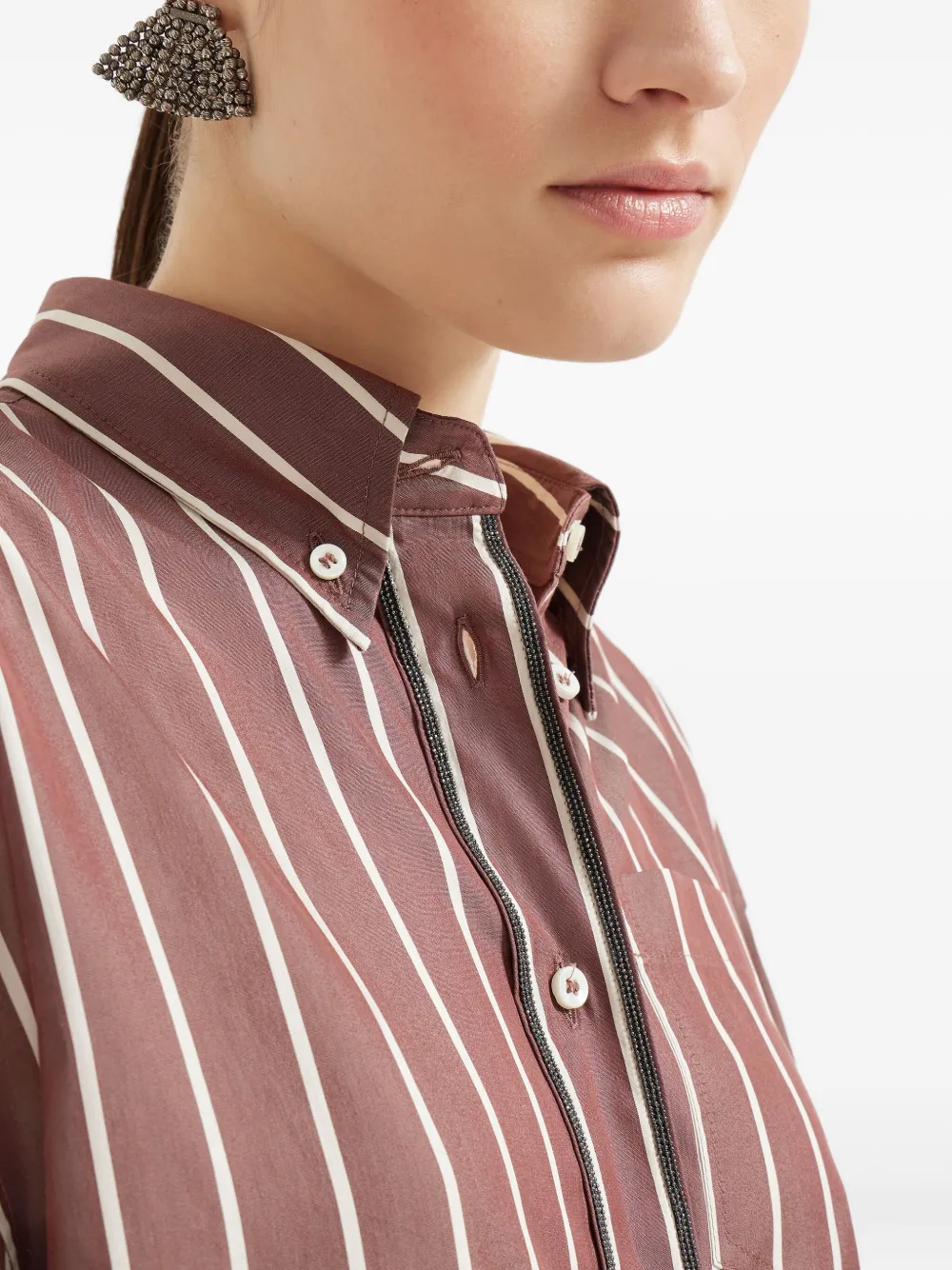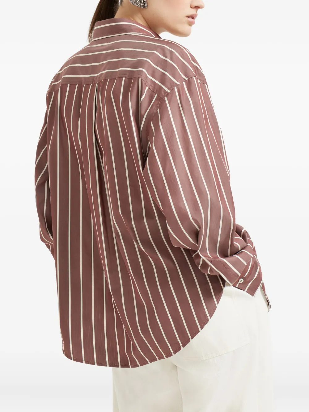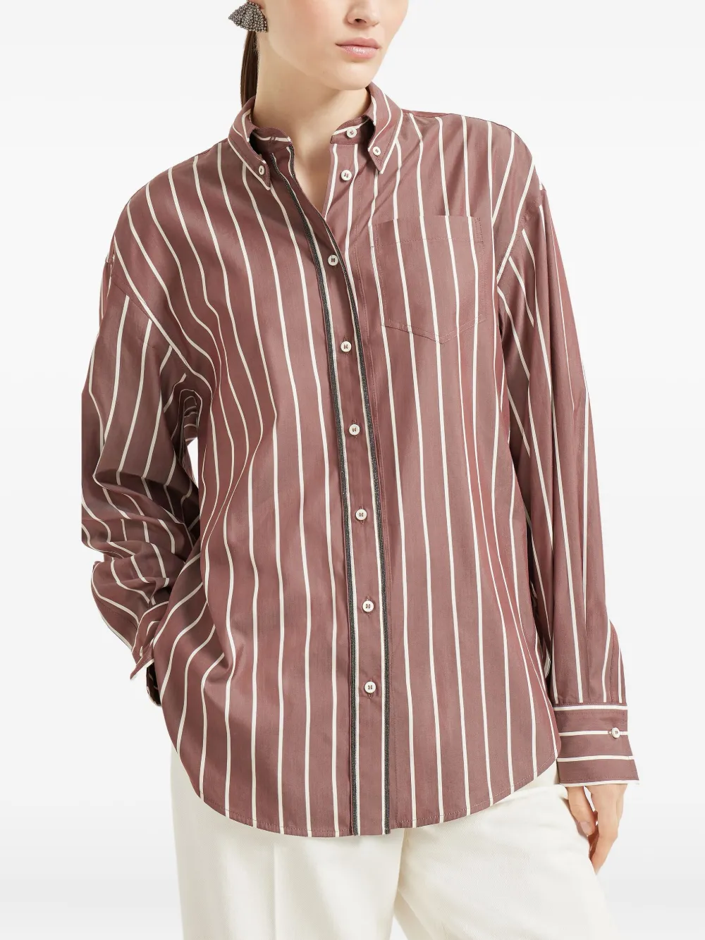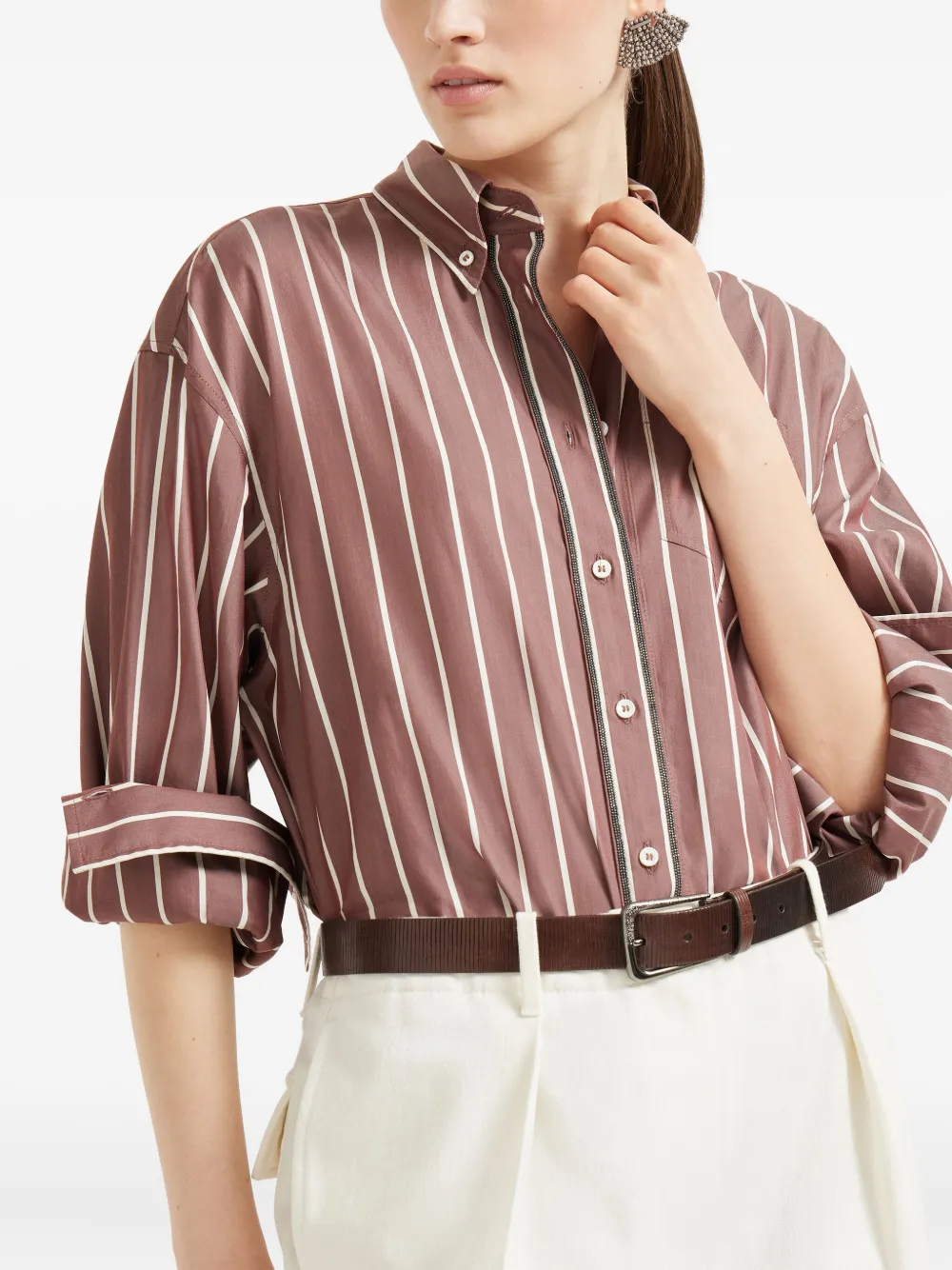 Полосатая поплиновая рубашка Brunello Cucinelli, коричневый 117 808₽