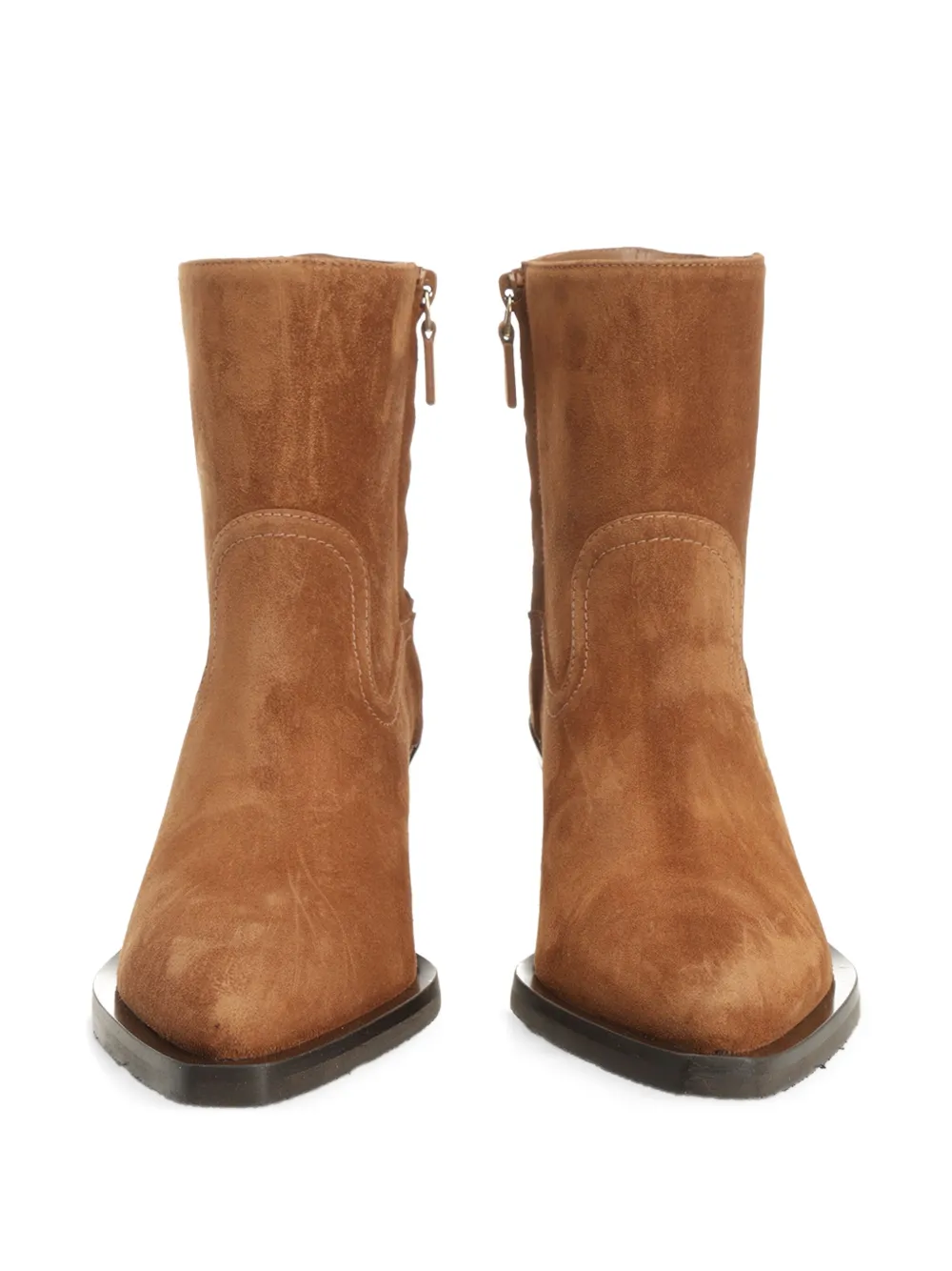 Коричневые туфли с острым носком и наборным каблуком, дизайн в стиле вестерн, застежка-молния