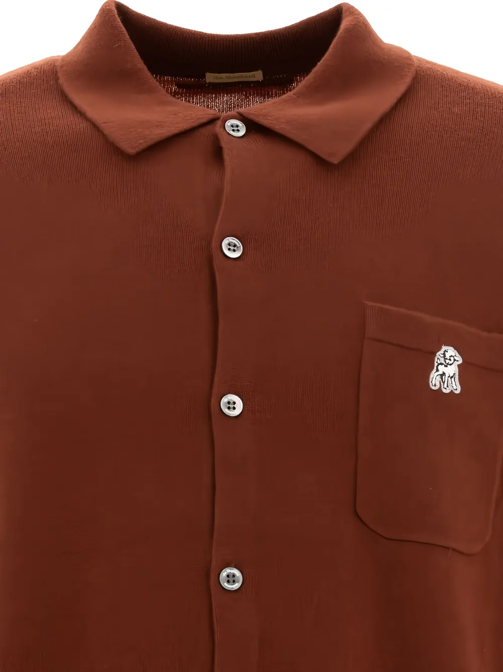 Коричневая застежка на пуговицы, ребристый подол, вышитая деталь