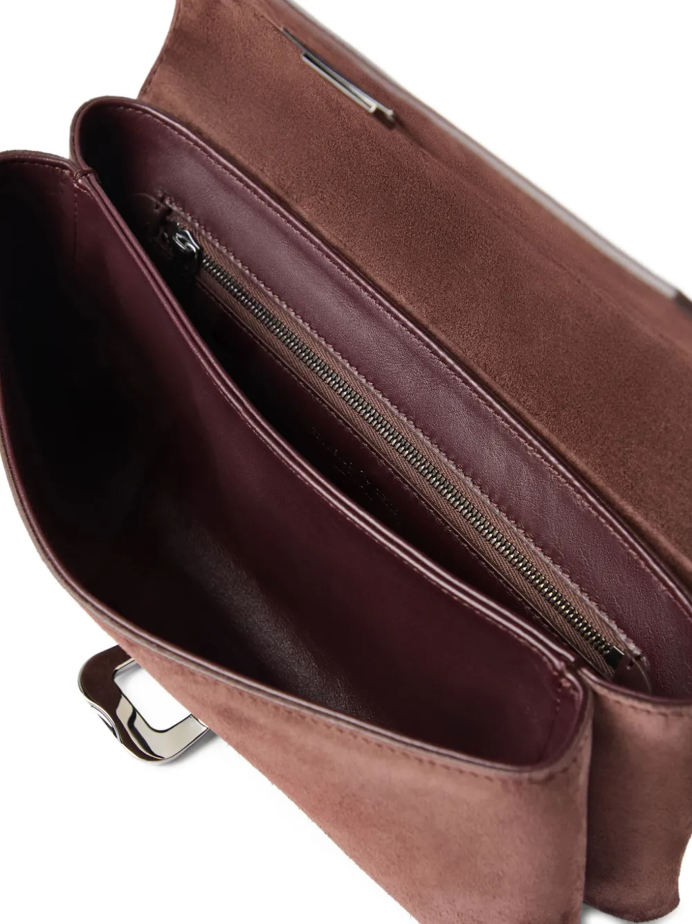 Коричневый контрастный клапан с металлической пряжкой, внутренний карман на молнии