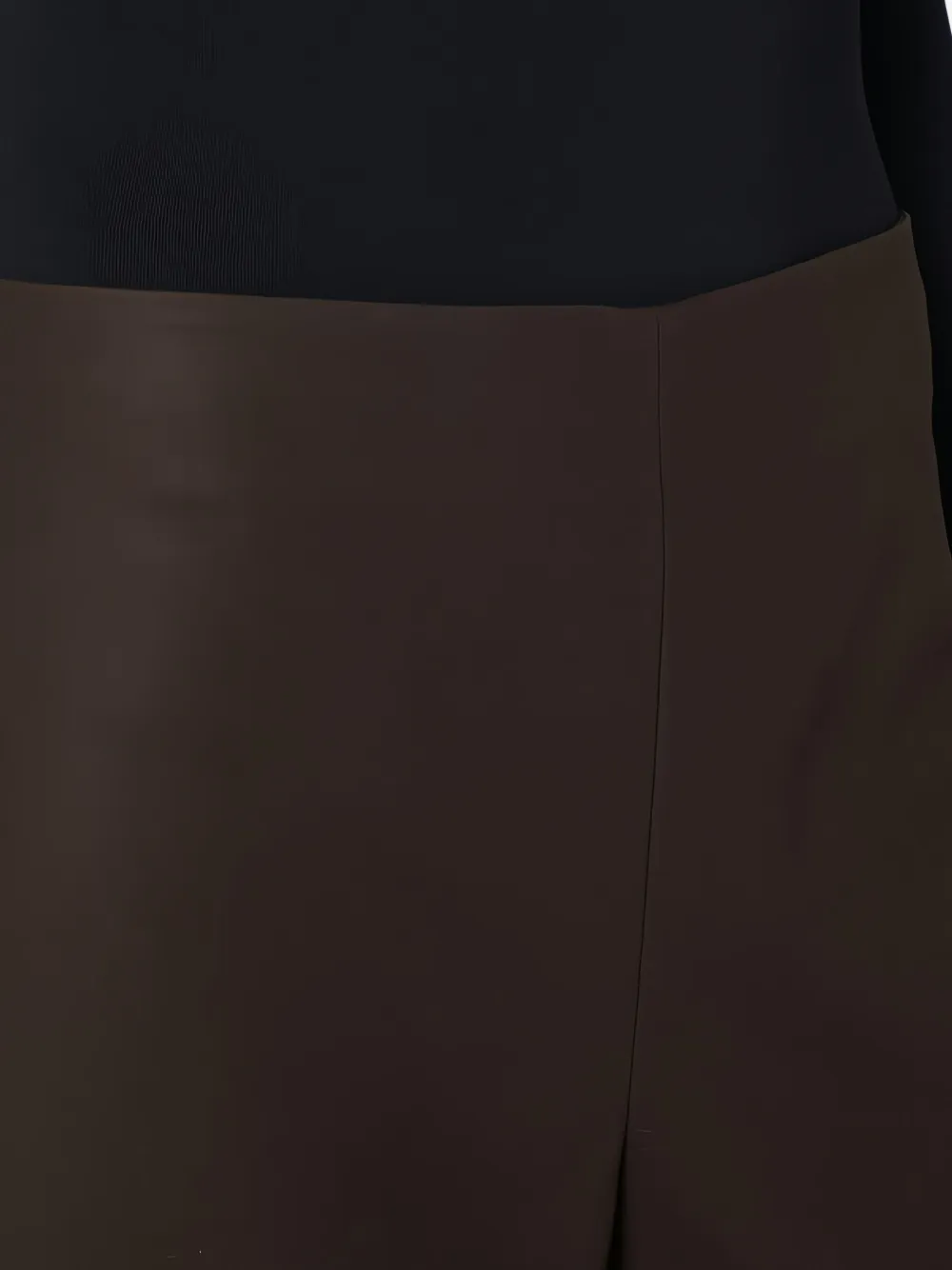 Темно-коричневые закругленные боковые панели, потайная застежка, прямой подол