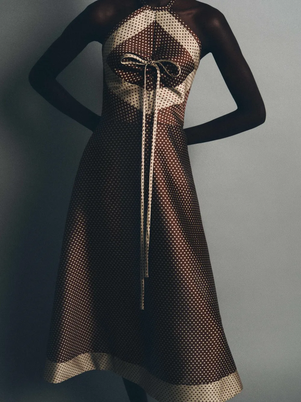 Платье миди в горох с вырезом халтер Rosie Assoulin, коричневый 82 431₽