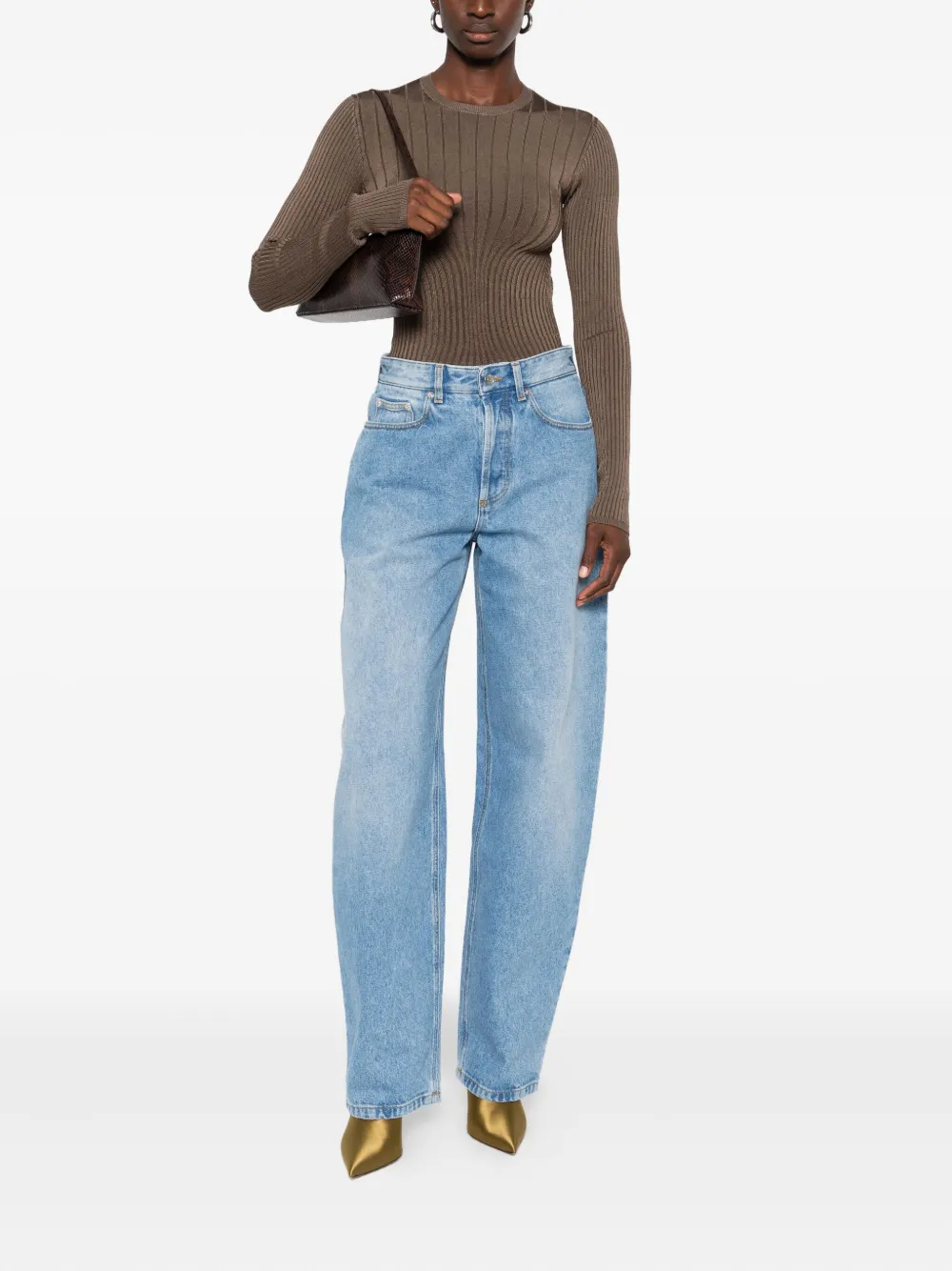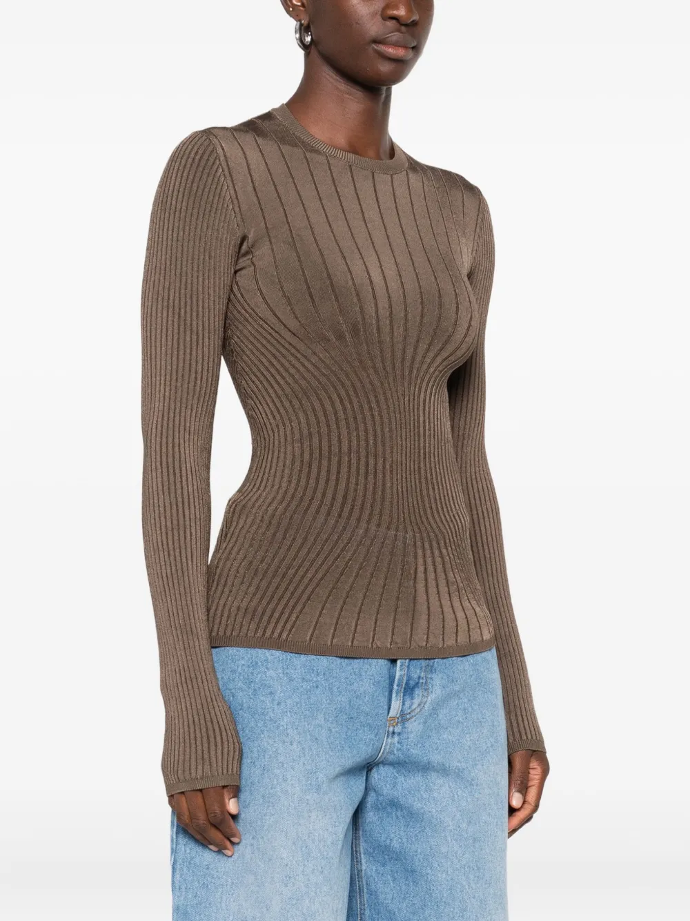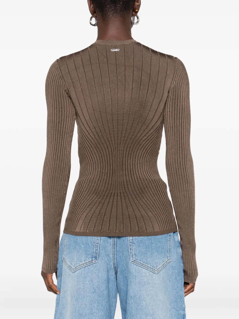 Ребристый свитер с круглым вырезом Mugler, коричневый