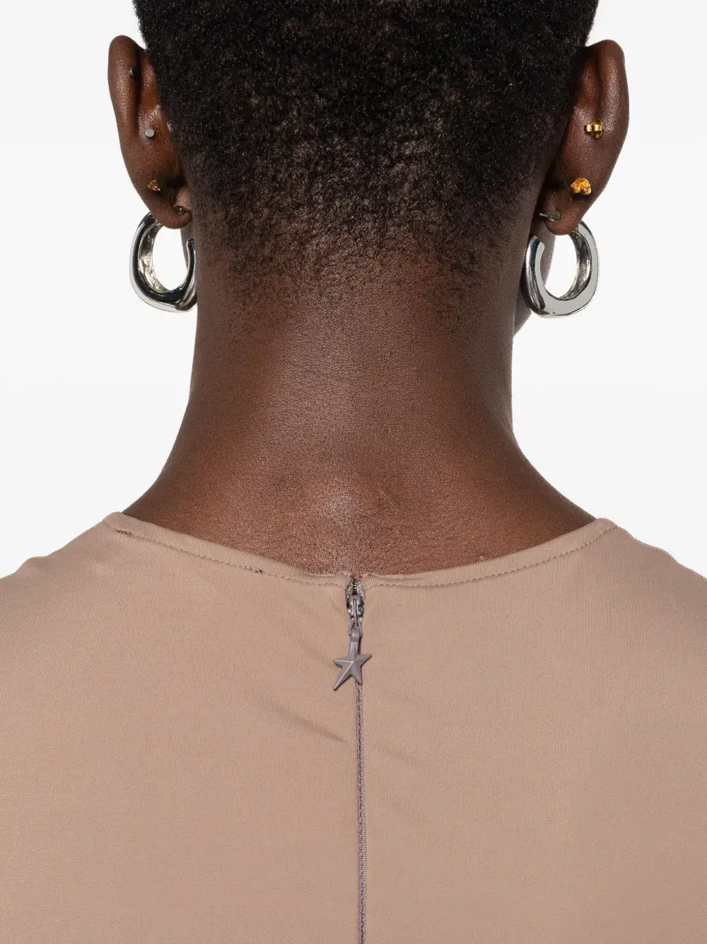 Мокко-коричневого цвета, застежка-молния, без рукавов, круглый вырез, логотип